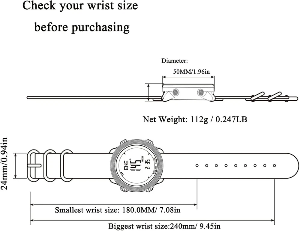 Military-Watch for Men - Tactical Survival Watch, Men's Digital Wrist Watches for Sports Outdoors, Pedometer, Compass, Calories, Durable Nylon Band Model: /-46 Clasp type Push Button Deployment Clasp Item type name Fitness Watch Country of Origin China Dimensions: 46x46x14mm Weight: 95g Strap:, Army Style Waterproof: 50M (Suitable for swimming) Altimeter & Thermometer: Supported Compass & Barometer: Supported Product details Clasp type Push Button Deployment Clasp Item type name Fitness Watch Country of Origin China About this item Dimensions: 46x46x14mm Weight: 95g Strap:, Army Style Waterproof: 50M (Suitable for swimming) Altimeter & Thermometer: Supported Compass & Barometer: Supported See more About this item