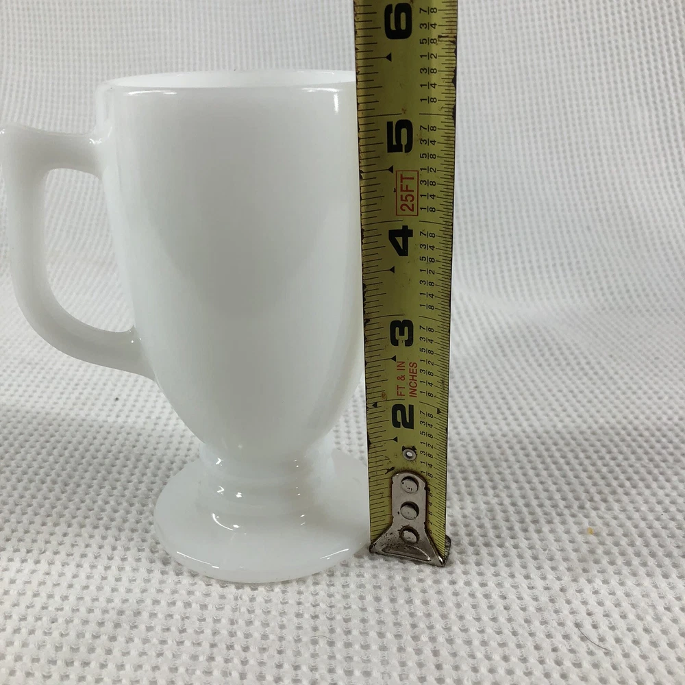 Milk Glass Pedestal Footed Cup Mug Hot Cocoa Irish Coffee White Handle. Condition is Used. Shipped with USPS Ground Advantage.