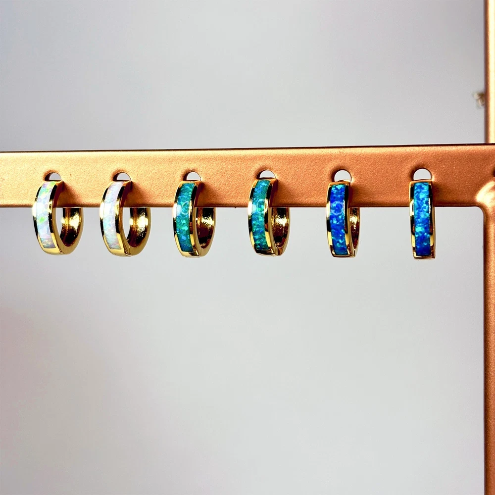 Milky White Opal Hoop Earrings – Dainty Huggies in Sterling Silver & 18k Gold Plated Elevate your jewelry collection with these Milky White Opal Hoop Earrings, available in sterling silver or 18k gold-plated finish. Featuring a radiant white opal inlay, these dainty huggies add timeless elegance to any outfit, whether worn daily or for special occasions. FREE & FAST SHIPPING Features Material Options: Choose from: Sterling Silver: Classic and durable. 18k Gold Plated: Luxurious and radiant. Opal Inlay: Milky white opal shines with an iridescent glow, catching the light beautifully. Design: Smooth, polished huggie hoop style for a snug and stylish fit. Size: Inner Diameter: ~6.5mm. Outer Diameter: ~11mm. Why Milky White Opal? White opal is celebrated for its soft, ethereal beauty and symbolic connection to hope and purity. Its luminous hues make it a versatile gemstone, pairing seamlessly with any outfit. Gemstone Options This listing highlights Milky White Opal, but other beautiful colors are available: Deep Blue Opal: A striking, oceanic hue for bold elegance. Garden Green Opal: A fresh and vibrant shade symbolizing growth and renewal. Perfect for Gifting These Milky White Opal Hoop Earrings make a thoughtful gift for: October Birthdays: Celebrate with opal, the traditional October birthstone. Holidays: Delight someone special with timeless opal jewelry. Anniversaries: A unique and meaningful keepsake. Why You’ll Love Them Versatile Style: Effortlessly chic for everyday wear or elegant occasions. Comfortable Fit: Lightweight design ensures all-day wear without discomfort. Timeless Elegance: The radiant white opal pairs beautifully with sterling silver or gold for a classic yet modern look. Care Instructions: To keep your opal huggies looking their best: Avoid exposure to water, perfumes, or harsh chemicals. Store in a dry jewelry box or pouch when not in use. Please Note: Each pair is crafted with care, and opal hues may vary slightly, making your earrings truly one-of-a-kind. Fast & Reliable Shipping: All items are beautifully packaged in reusable and recyclable jewelry boxes, ready for gifting. Add a touch of elegance to your jewelry collection with these Milky White Opal Hoop Earrings, available in sterling silver or 18k gold. Perfect as a personal treat or a meaningful gift, these dainty huggies are designed for everyday sophistication. Order now with FAST & FREE shipping!