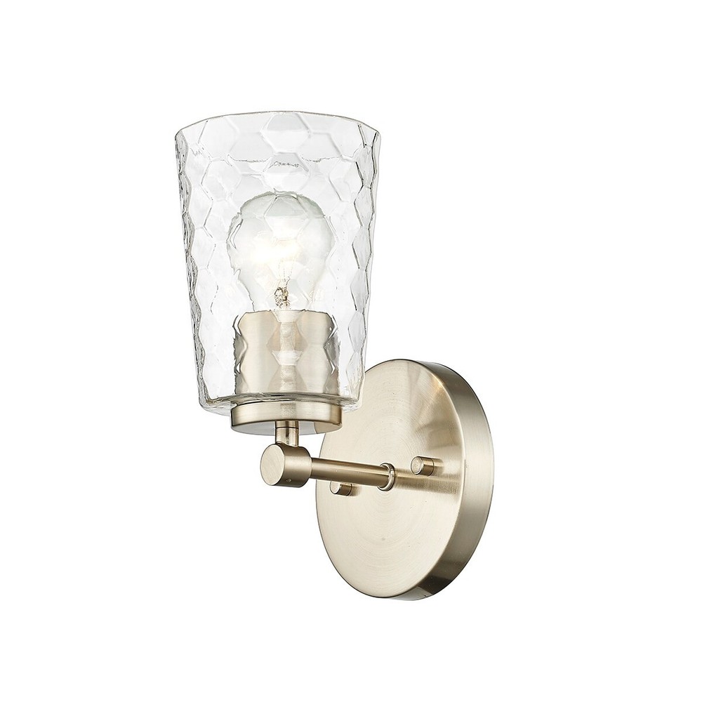 Wherever there is a need for light, there is the opportunity to make an excellent design choice. Sconce lighting gives you that chance to make creative choices to illuminate stairs, hallways, or any space in the home that needs a little light. Bulbs must be purchased separately.Place this fixture to the side of your mirror to add the perfect lighting to your bathroom.Honeycombed glass globes, uniquely designed to create a stunning textured lighting effect, are the hallmark of the Ashli Collection. Available as either chandelier or vanity lighting, the artfully twisted fixtures are finished in either modern gold or brushed nickel. Compatible with a standard wall dimmer Can be mounted as an uplight or downlight 1 Year limited manufacturer's warranty This item is UL listed Meets CSA Free Shipping Over $49.99* Details Millennium Lighting Ashli 1 Light Sconce with Clear Honeycomb Glass Shades Product Description: Wherever there is a need for light, there is the opportunity to make an excellent design choice. Sconce lighting gives you that chance to make creative choices to illuminate stairs, hallways, or any space in the home that needs a little light. Bulbs must be purchased separately. Place this fixture to the side of your mirror to add the perfect lighting to your bathroom. Honeycombed glass globes, uniquely designed to create a stunning textured lighting effect, are the hallmark of the Ashli Collection. Available as either chandelier or vanity lighting, the artfully twisted fixtures are finished in either modern gold or brushed nickel. Compatible with a standard wall dimmer Can be mounted as an uplight or downlight 1 Year limited manufacturer's warranty This item is UL listed Meets CSA standards Professional installation recommended Rated for damp location