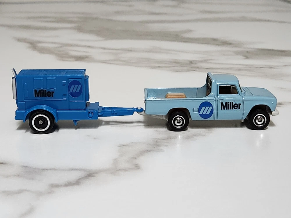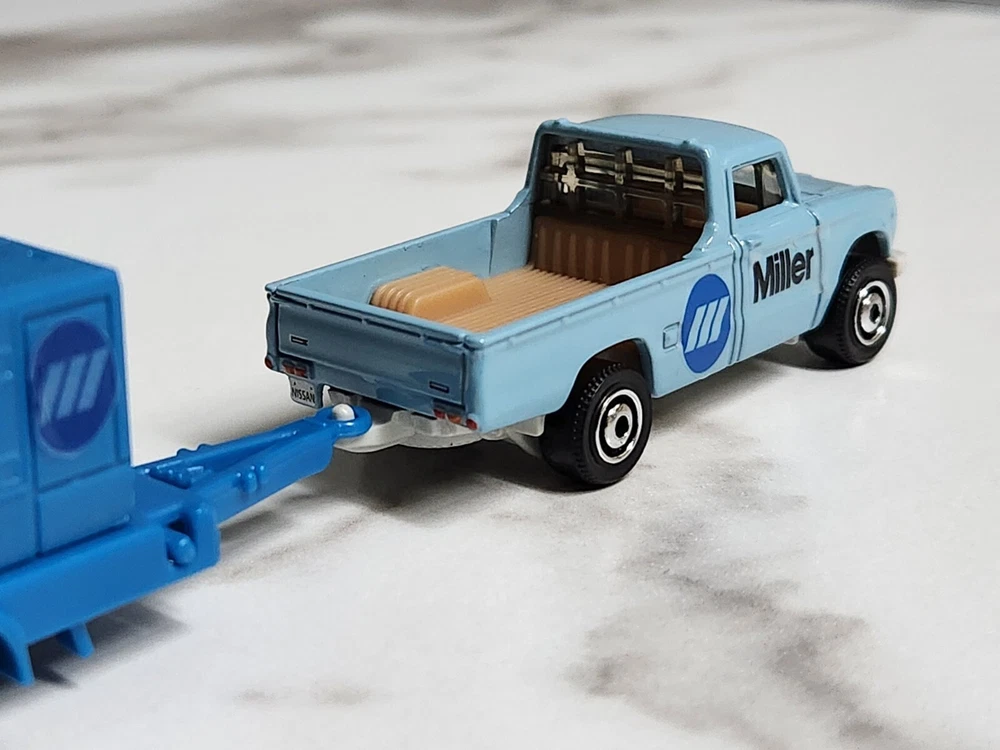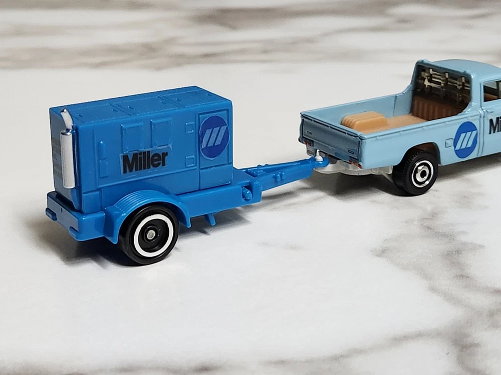 "Miller Welding" Matchbox 1962 Nissan Junior Truck & Welder Generator Trailer This collectible is fresh out of the pack and is in mint or near mint condition. Please look at the pictures for detail. What is in the pictures is exactly what is for sale. FAST & FREE SHIPPING! THANK YOU!