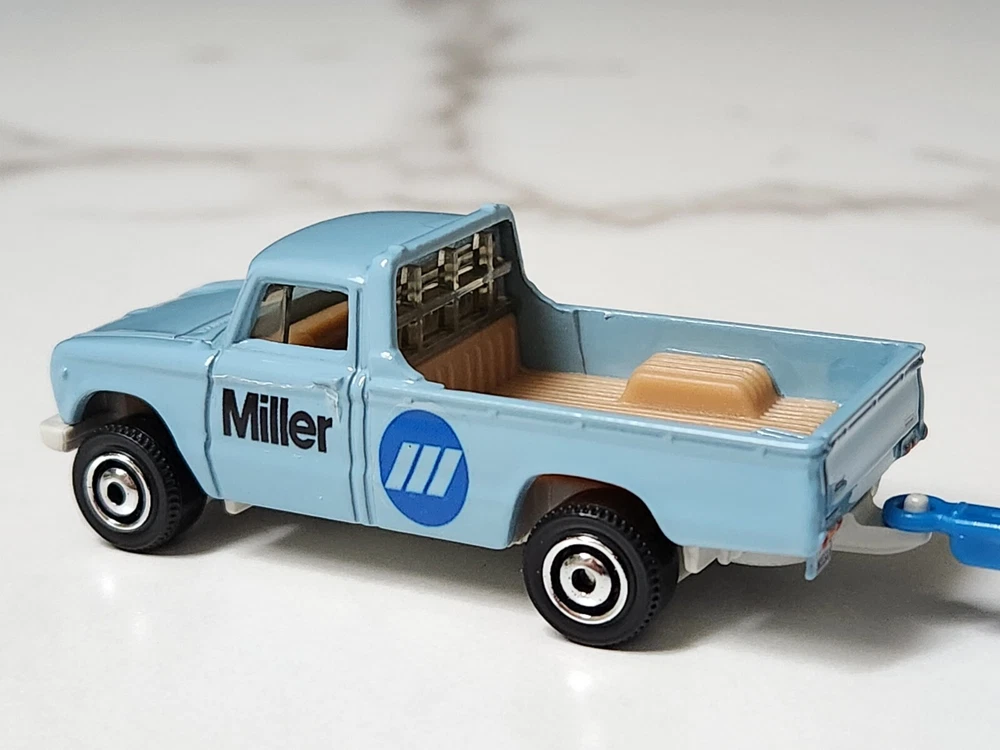 Color: Blue Brand: Matchbox Country/Region of Manufacture: Thailand Features: Advertising Specimen, Limited Edition, Special Edition, Collectors Item Vehicle Type: Pickup Truck Scale: 1:64 Series: Matchbox Truck Vehicle Make: Nissan UPC: Does not apply Age Level: 3-4 Years, 4-7, 8-11 Years, 12-16 Years, 17 Years & Up Theme: Miller Welding Recommended Age Range: Adult Collector Character Family: Miller Welding Year of Release: 2017 gtin13: Does not apply Material: Diecast Year of Manufacture: 2017 Model: Nissan Junior Gender: Boys & Girls Customized: Yes Vehicle Year: 1962