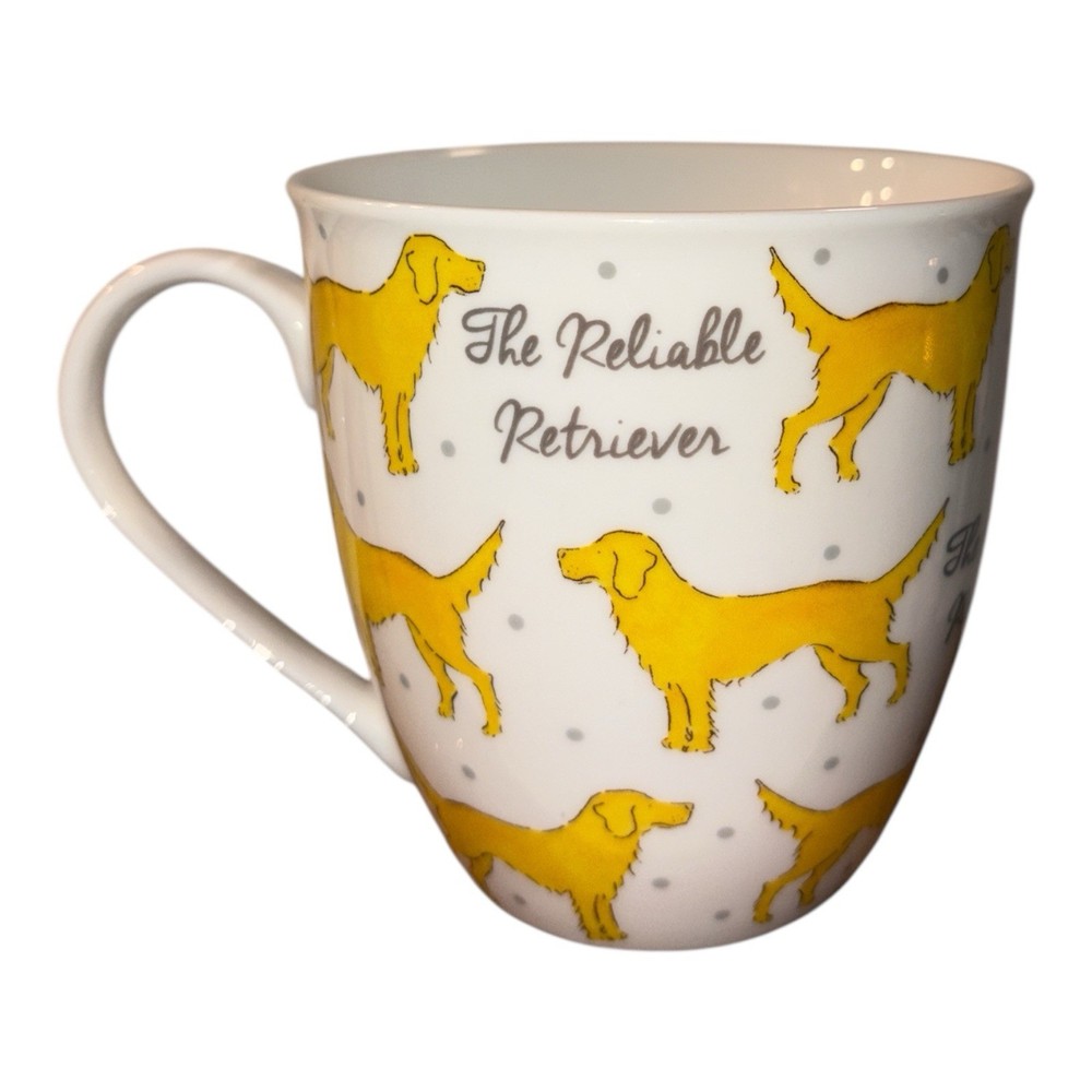The Milly Green The Reliable Retriever Coffee Mug is a 17oz round ceramic and porcelain coffee mug featuring a dog design in a contemporary style. This large 4.25” coffee mug is suitable for both hot and cold beverages and is perfect for all occasions. The multicolor painted design makes it a charming addition to any kitchen or home decor. With free shipping from Britain, this original coffee mug is a delightful collectible for those who appreciate golden retrievers. Excellent condition, like new. Free shipping #81