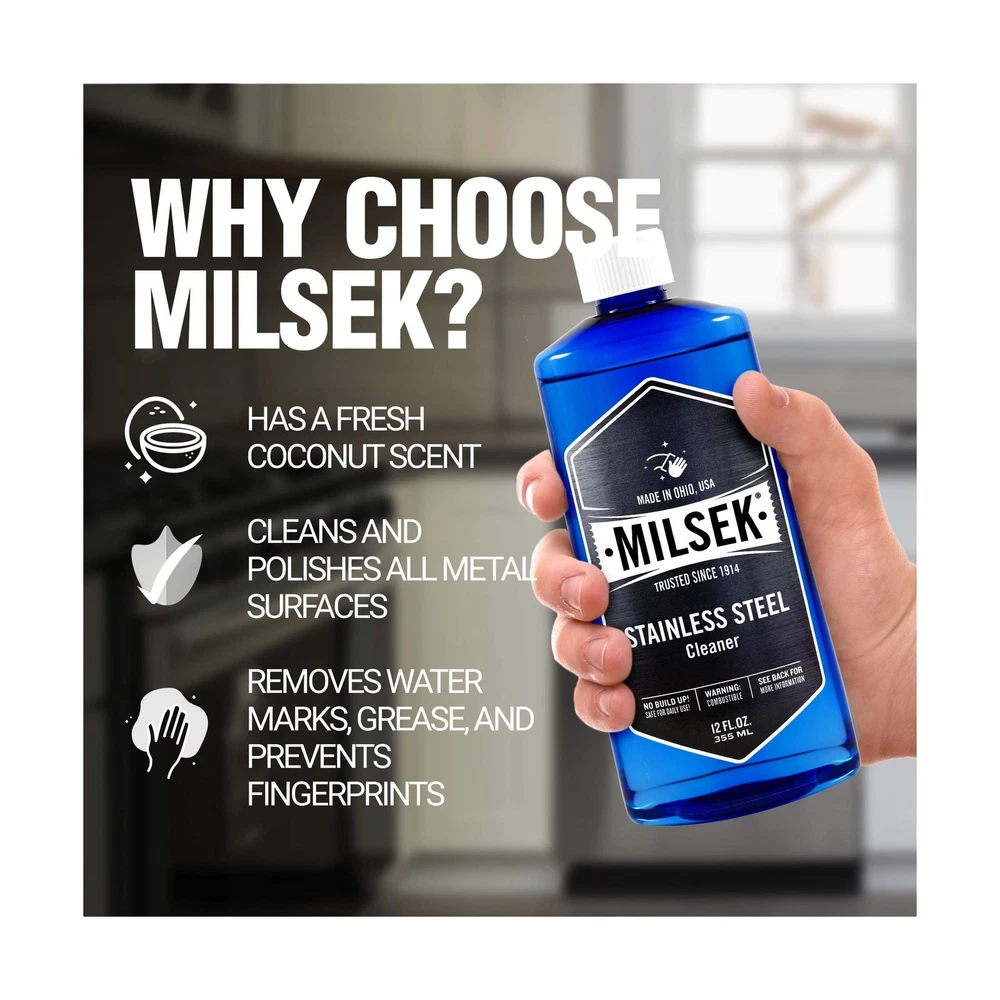 Milsek Stainless Steel Cleaner, 12 Fl Oz (16 Pack), Blue, 192 Description Milsek Stainless Steel Cleaner cleans, protects, and shines all metal surfaces. Milsek Stainless Steel cleaner will remove pesky fingerprints, water marks, grease, smudges, dish soap residue and mineral deposits on all stainless steel and metal surfaces with ease. Milsek Stainless Steel Cleaner contains no harmful abrasives, so there is no need to worry about scratches or alternating the finish. Milsek Stainless Steel Cleaner also works as a great glue residue remover, and label sticker remover. From the Manufacturer Milsek Furniture Polish Inc. We are the manufacturers and distributors of the complete line of Milsek products lead by its star – ‘The Original’, Milsek Furniture Polish & Cleaner with Lemon Oil. The Milsek Formula was created in 1914 and has expanded by adding an Orange Mandarin scent and another favorite, our “Holiday Oil” which boasts the unique blends of Cinnamon and Raspberry. We also found an easy solution for cleaning Stainless Steel with our One-Step Stainless Steel Cleaner. Our specialty line has expanded further to include our Leather Cleaner & Conditioner, Antique & Restoration, Musical Instrument and Gun Stock & Barrel Cleaner. Features: Ultimate Cleaning, Polishing, and Protection: Milsek Stainless Steel Cleaner does it all for your metal surfaces, leaving them gleaming, protected, and ready to impress with a professional shine. Perfect for Stainless Steel and More: From appliances to gas grills, patio furniture to light fixtures, this cleaner tackles all metal surfaces with ease, making them sparkle like new. Say Goodbye to Pesky Smudges: Milsek Stainless Steel Cleaner not only cleans but also makes surfaces more resistant to fingerprints, ensuring they stay pristine for longer. Pure Cleaning Power: With 100% cleaning and polishing ingredients and no water, this cleaner delivers unmatched results without the risk of water spots or streaks. Fresh Coconut Fragrance Delight: Enjoy the refreshing aroma of coconut as you clean, transforming your cleaning routine into a tropical escape for the senses. Product Details: Brand: Milsek Item Form: Wipe Scent: Coconut Specific Uses For Product: cleans all metal surfaces Material Feature: Recyclable Is Discontinued By Manufacturer : No Product Dimensions : 13.75 x 10 x 8 inches; 16 Pounds Item model number : SS-MC-PK -16 Date First Available : June 19, 2016 Manufacturer : Milsek Furniture Polish, Inc Delivery We Do Not Ship Outside of the Continental US. Return Policy All items qualify for returns within 30 days of receipt. Buyer is responsible for return shipping on any item that is not damaged. Feedback We take our reputation seriously, we buy and sell online, so we understand the value of trust. If you are unsatisfied with your order, please contact us and we will work with you to resolve it to your satisfaction.