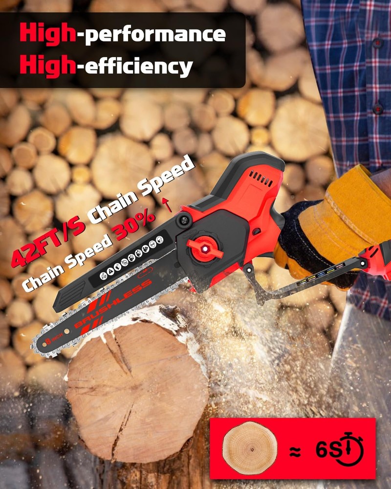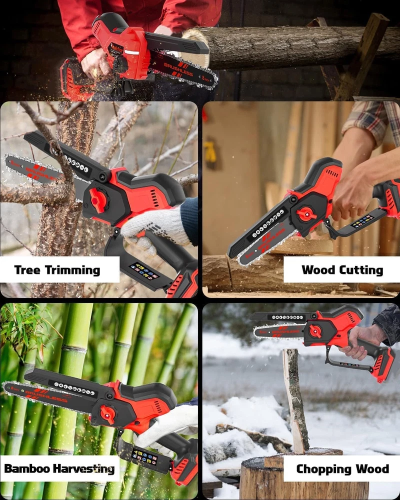 This mini chainsaw is a game-changer for quick, cord-free cutting! Perfectly compatible with Milwaukee 18V batteries, it makes trimming branches or small logs effortless without the hassle of gas or cords. The low-voltage protection ensures safety by shutting down if power drops too low. Lightweight yet powerful, it’s ideal for DIY projects or yard work. Just pop in your battery and get cutting—no fuss, no mess! Highly recommend for anyone needing portable, reliable cutting power.