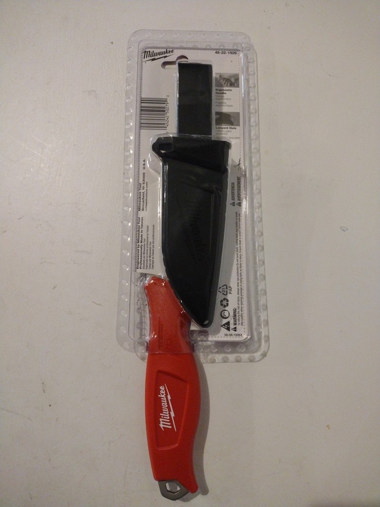 The Milwaukee 4" Tradesman Fixed Blade Knife # 48-22-1926 is a versatile utility knife perfect for a variety of tasks in your home or workshop. Made with durable stainless steel and a sturdy plastic handle, this knife is designed for long-lasting performance. With a bright red color and a 4" blade width, it is easy to locate and use for your DIY projects. This model is a reliable tool that will quickly become a staple in your tool collection.