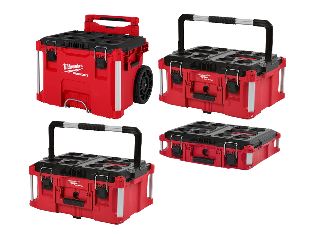 Features Rolling Tool Box 250lbs Weight Capacity Fully Collapsible Handle: 19.75" 9" All-Terrain Wheels Metal Reinforced Corners Impact Resistant Body IP65 Rated Protection Metal Reinforced Locking Point Heavy Duty Latches Interior Organization Tray Most Versatile, Durable Modular Storage System Modular Connectivity with ALL PACKOUT™ Components Limited Lifetime Warranty Large Tool Box Part of the PACKOUT Modular Storage System Constructed with Impact Resistant Polymers 100lbs Weight Capacity IP65 Rated Weather Seal Metal Reinforced Top Handle Metal Reinforced Corners Metal Reinforced Locking Point Interior Organizer Tray Mounting Location for the ONE-KEY TICK Standard Tool Box Part of the PACKOUT Modular Storage System Constructed with Impact Resistant Polymers 75lbs Weight Capacity IP65 Rated Weather Seal Metal Reinforced Corners Metal Reinforced Locking Point Interior Organizer Trays Mounting Location for the ONE-KEY TICK What's in The Box (1) PACKOUT Rolling Tool Box (48-22-8427) (2) PACKOUT Large Tool Box (1) PACKOUT Standard Tool Box Owner's Manual Warranty Limited Lifetime Factory Warranty 30 Day Satisfaction Guaranteed Specifications SKU 48-22-84KIT4 Brand Milwaukee 48-22-8427 Material Composition Polypropylene Length 18 in Weight 24 lb Height 19.5 in Width 22 in 48-22-8425 Weight Capacity 100 lbs. Construction material Impact Resistant Polymers Weather Rating IP65 Length 22.1 in. Width 16.1 in. Height 11.3 in. Product Weight 12.1 lbs. Shipping Weight 13 lbs. 48-22-8424 Weight Capacity 75 lbs. Construction Material Impact Resistant Polymer Weather Rating IP65 Length 22.1 in. Width 16.1 in. Height 6.6 in. Product Weight 10.1 lbs. Shipping Weight 11 lbs. why buy from us? secure & hassle-free shopping All items are covered by manufacturer warranty. fast shipping Most orders delivered in 1-3 business days. customer service Call us toll free: 1-800-629-3325 satisfaction guaranteed All our sales are backed by a 30-day satisfaction guarantee.