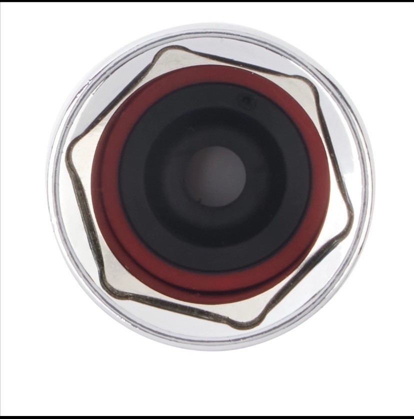 ; Features and Benefits: More Secure Rubber Retainer; Precision Control - Knurled Socket; Stamped Sizes for Better Visibility; Optimized geometry to reduce rounding; Chrome Plated; Rust Protection; 6-Point Socket; Lifetime Guarantee;