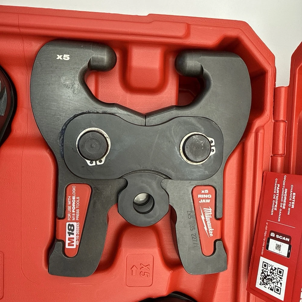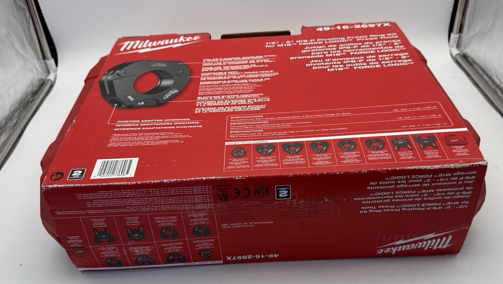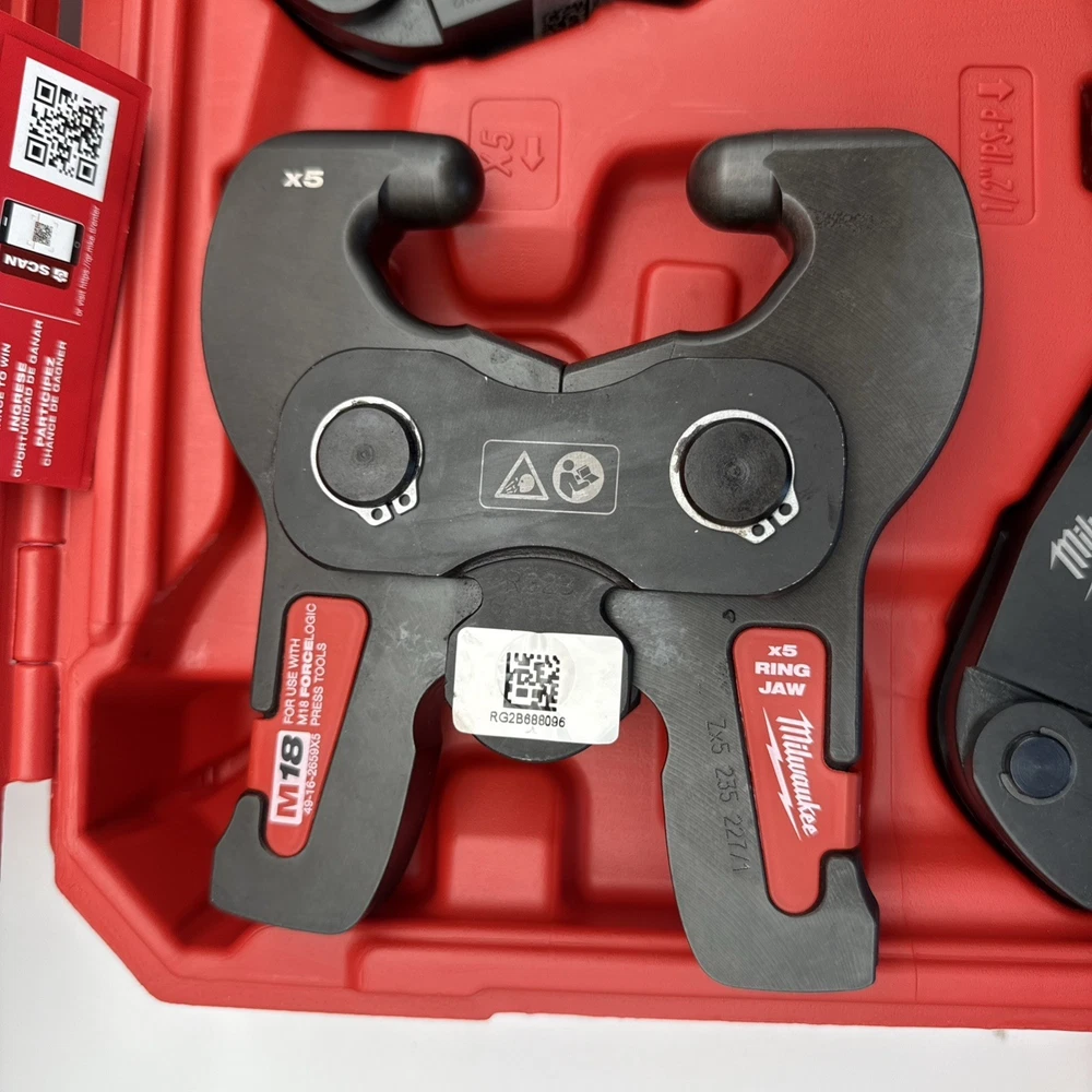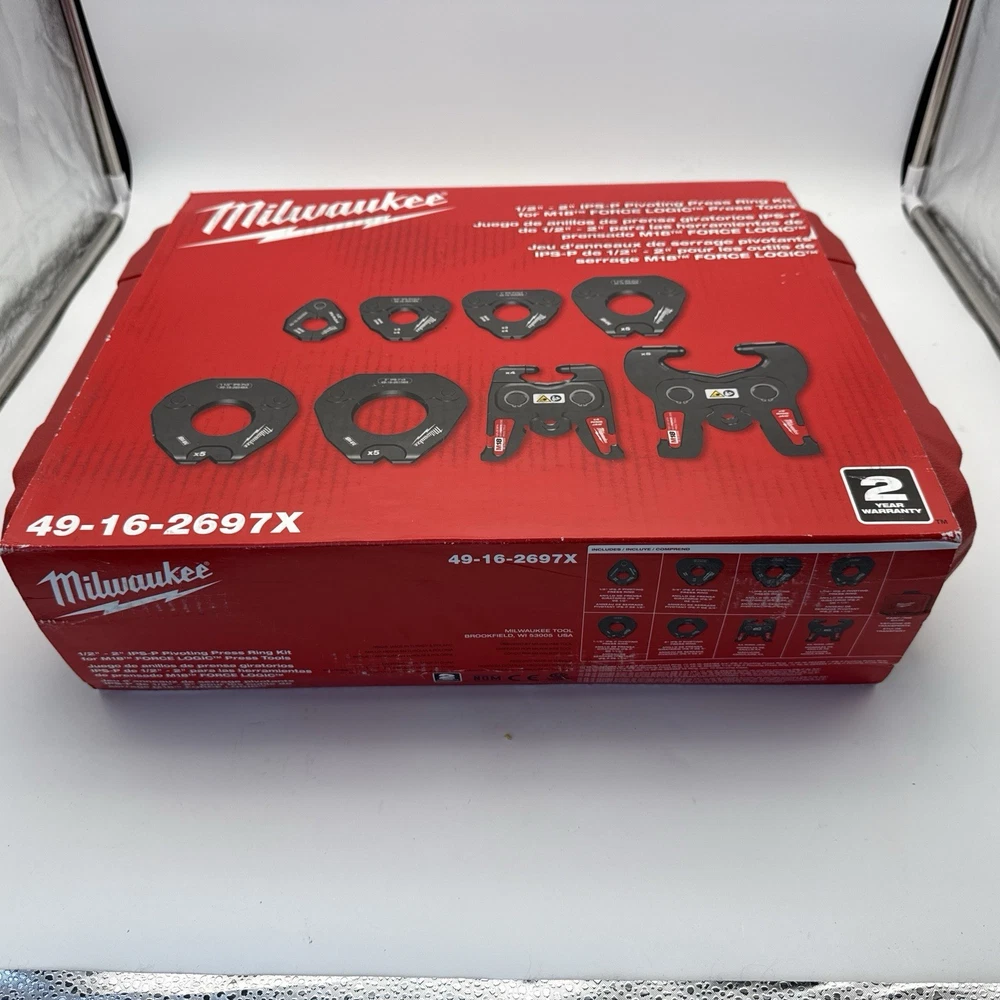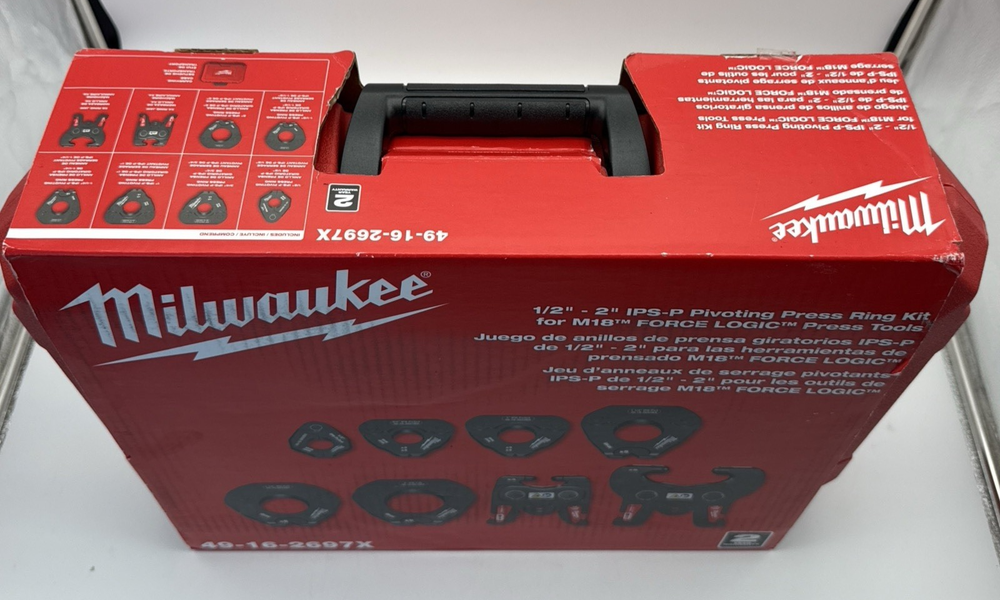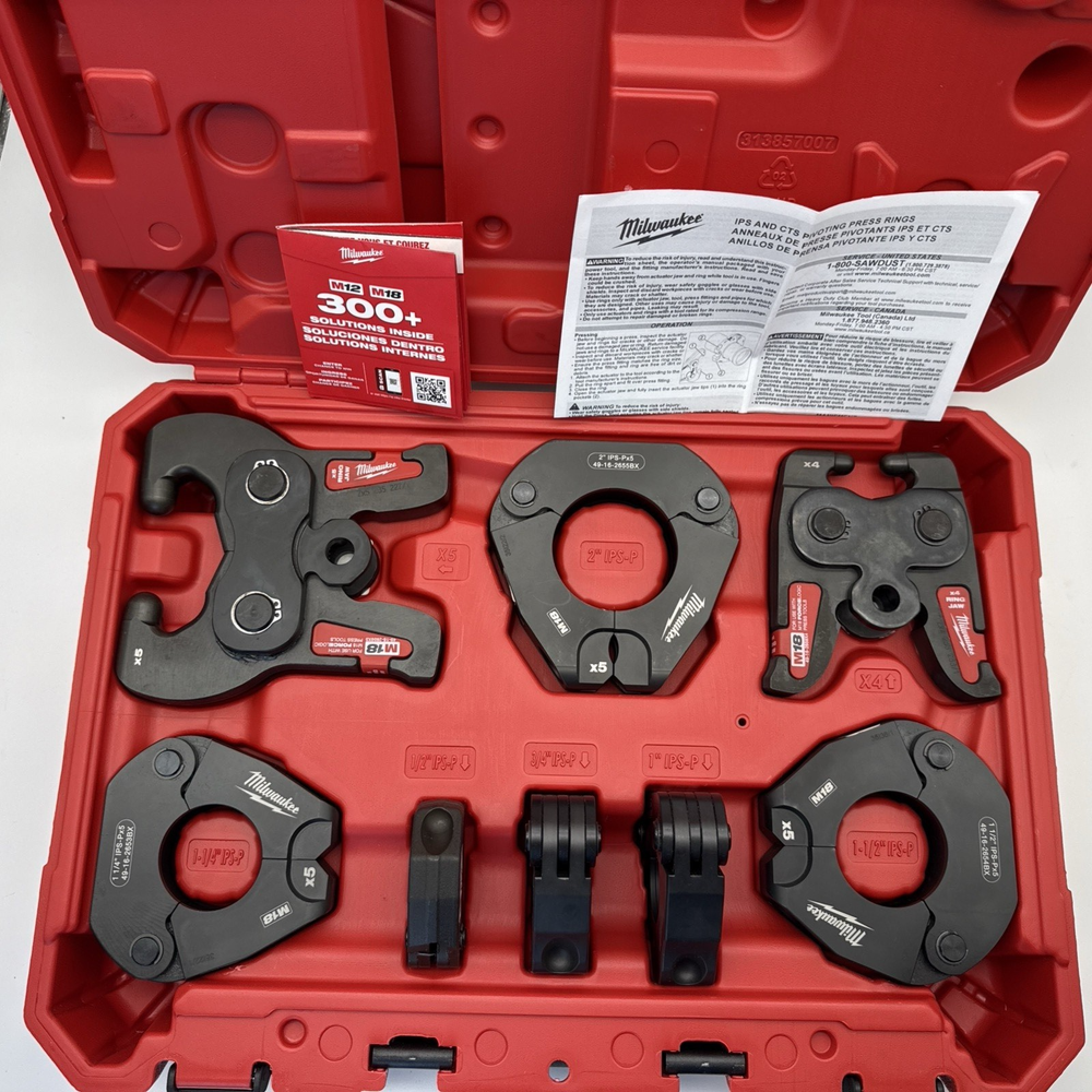 1/2" - 2" IPS-P Pivoting Press Ring Kit for M18™ FORCE LOGIC™ Press Tools 304 Stainless Steel, 316 Stainless Steel, Black Iron Read a Review. Same pag Our 1/2" – 2” IPS-P Pivoting Press Ring Kit is designed for use with M18™ FORCE LOGIC™ Press Tools on Viega® MegaPress®, Apollo® PowerPress® and other press fitting systems. The IPS-P Pivoting Press Ring Kit is a more efficient alternative to welding and threading, enabling you to press connections on schedule 5 up to schedule 40 black iron pipe and 304/316 stainless steel pipe. Pivoting functionality delivers greater access in tight spaces when paired with the X4 Ring Jaw & M18™ FORCE LOGIC™ Press Tools or the X5 Ring Jaw & M18™ FORCE LOGIC™ Press Tools. Additionally, MILWAUKEE®'s press blocking system prevents improper ring and ring jaw mismatch providing peace of mind in quality connections. The 1/2" – 2” IPS-P Pivoting Press Ring Kit, combined with the ring jaw and in-line M18™ FORCE LOGIC™ Press Tools, deliver unrivaled access in tight spaces and around installed pipes, providing you with controlled, flameless connections for unmatched productivity. Ring Jaw Made in Turkey and Poland. Includes (1) 1/2" IPS-P Pivoting Press Ring for M18™ & M12™ FORCE LOGIC™ Press Tools (49-16-2650BX) (1) 3/4" IPS-P Pivoting Press Ring for M18™ & M12™ FORCE LOGIC™ Press Tools (49-16-2651BX) (1) 1" IPS-P Pivoting Press Ring for M18™ & M12™ FORCE LOGIC™ Press Tools (49-16-2652BX) (1) 1-1/4" IPS-P Pivoting Press Ring for M18™ FORCE LOGIC™ Press Tools (49-16-2653BX) (1) 1-1/2" IPS-P Pivoting Press Ring for M18™ FORCE LOGIC™ Press Tools (49-16-2654BX) (1) 2" IPS-P Pivoting Press Ring for M18™ FORCE LOGIC™ Press Tools (49-16-2655BX) (1) X4 Ring Jaw for M18™ FORCE LOGIC™ Press Tools (49-16-2659X4) (1) X5 Ring Jaw for M18™ FORCE LOGIC™ Press Tools (49-16-2659X5) (1 (1) Hard Carrying Case Compatible with M18™ FORCE LOGIC™ Press Tools Designed for use with all Major Fitting Brands, Including Viega® MegaPress® and Apollo® PowerPress® Pivoting Functionality Delivers Greater Access in Tight Applications Blocking System Prevents Ring & Ring Jaw Mismatch Faster Alternative to Welding and Threading Spring-Loaded Ring for Quick and Easy Alignment to Fitting Durable Steel Rings Provide Outstanding Life 2 Year Warranty