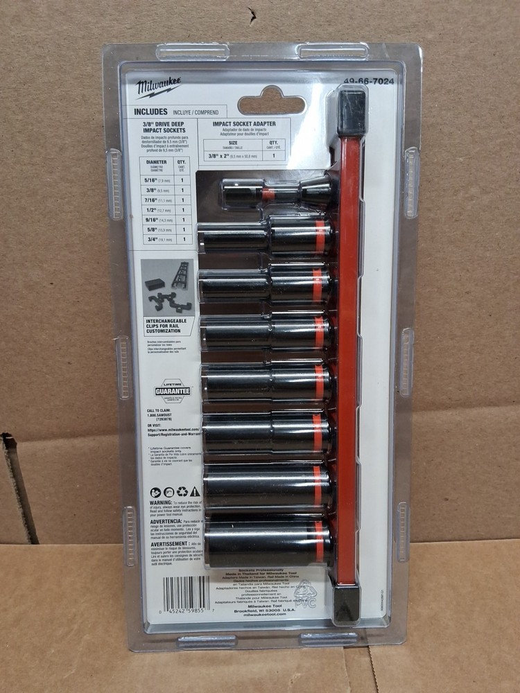 The Milwaukee 49-66-7024 8pc SAE 3/8" Drive Impact Socket Set is a high-quality hand tool set designed for automotive use. Made by the trusted brand Milwaukee, these sockets are perfect for removing and installing nuts and bolts with precision. With a focus on durability and performance, these impact sockets are crafted in a way to withstand tough use and provide a reliable grip on fasteners. This set includes 8 sockets in various sizes, making it a versatile addition to any mechanic's toolbox.