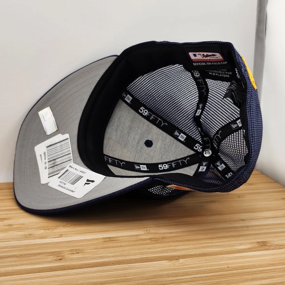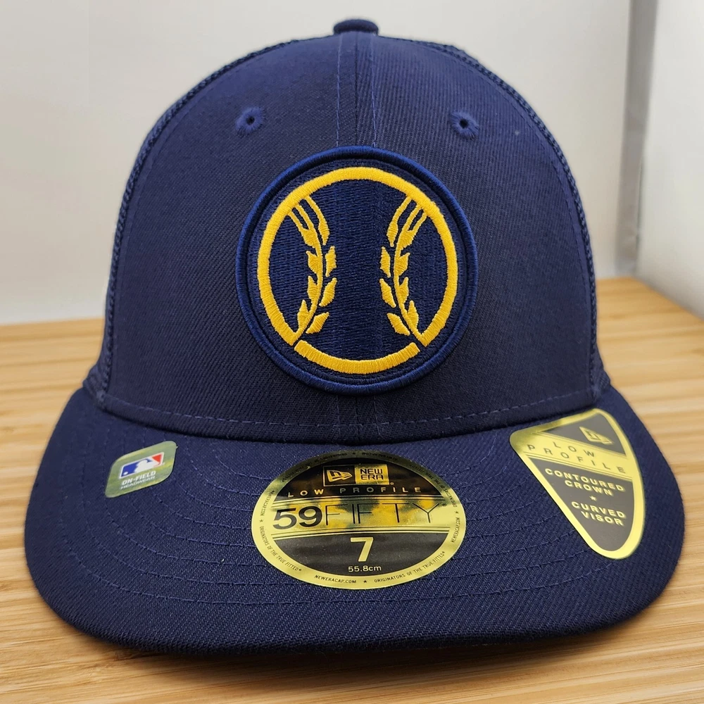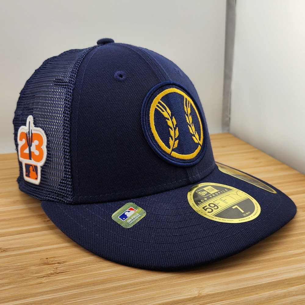 gtin13: Does not apply Style: Fitted Baseball Hat Sport: Baseball-MLB Featured Refinements: MLB Hat League: Major League (MLB) UPC: Does not apply Product: Cap, Hat Color: Navy Blue Brand: New Era Size: 7 Team: Milwaukee Brewers Pre & Post Season: Spring Training