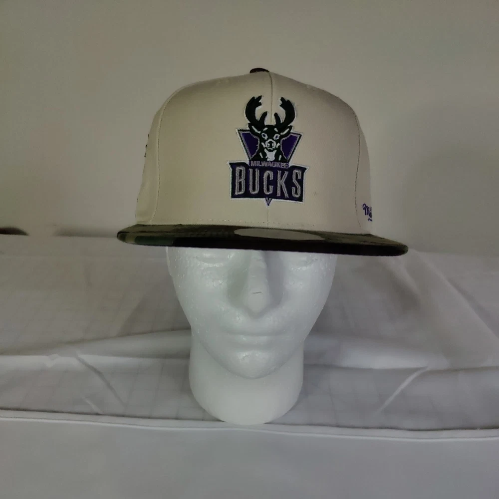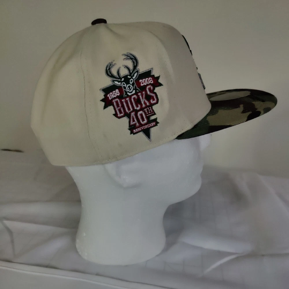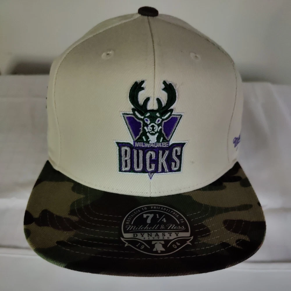 Show your love for the Milwaukee Bucks with this Mitchell & Ness 40th Cream Camo Hardwood Classics Fitted Cap. Perfect for NBA fans, this officially licensed cap features the team's colors and logo on the front. Made for male basketball enthusiasts, this cap comes in a size 7 1/4 and is perfect for any occasion. Crafted by Mitchell & Ness, this cap is made with the highest quality materials and features a unique camo design that is sure to turn heads. Whether you're watching the game at home or showing your support at the arena, this cap is a must-have for any true Milwaukee Bucks fan.