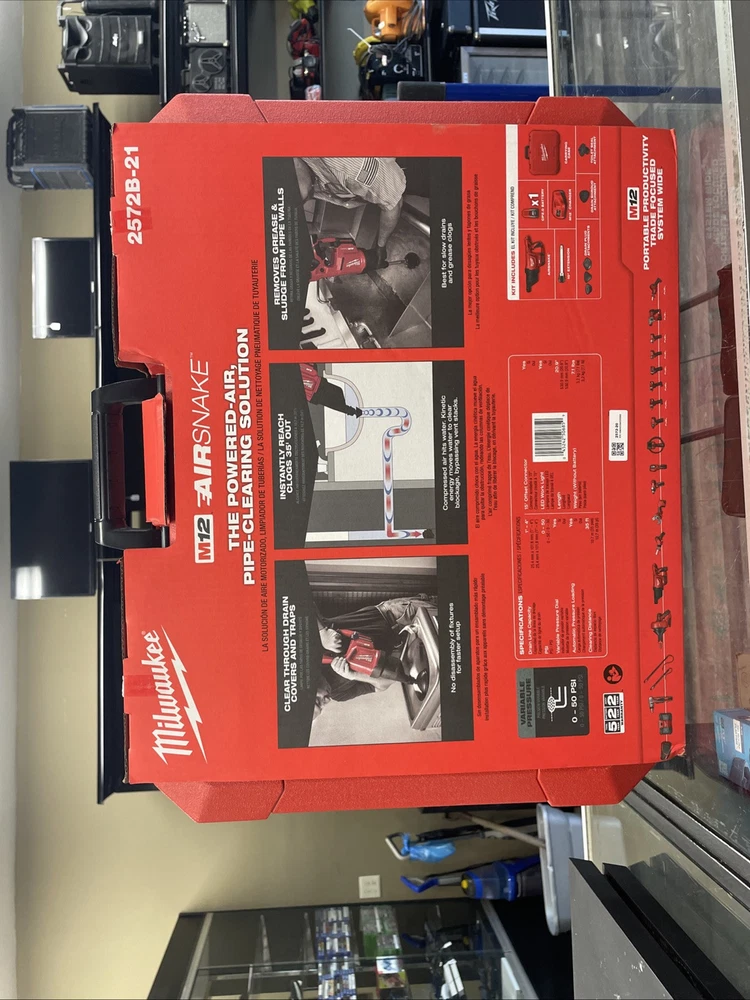 The Milwaukee M12 12V Lithium Cordless Drain Cleaning Airsnake Air Gun Kit 257B-21 is a powerful tool designed for efficient drain cleaning. With its cordless feature, this tool is easy to use and can be used in various settings, including business and industrial environments. The kit includes a drain snake that is specifically designed to clean clogged drains, making it an essential tool for businesses that require a reliable and efficient drain cleaning solution.