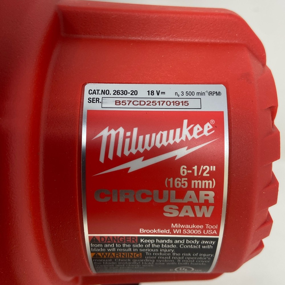 Blade Length: 7.2 in Blade Strength: High Manufacturer Warranty: 5 Years Number of Batteries: 1 gtin13: 045242155965 UPC: 045242155965 Item Width: 8 in Type: Circular Saw MPN: 263020 Item Length: 12.25 in Item Height: 10 in Number of Items in Set: 1 California Prop 65 Warning: Yes Battery Technology: Lithium-Ion (Li-Ion) Set Includes: Blades Battery Capacity: 2.8 Ah Model: Milwaukee 2630-20 M18 Item Diameter: 6-1/2 Suitable For: Wood, Metal, Plastic Blade Diameter: 6 1/2 in Item Weight: 9.05 lb Blade Location: Left Brand: Milwaukee Country of Origin: Vietnam Power Source: Cordless/Battery Battery Included: No Voltage: 18 V Motor Type: Brushed Cutting Angle: 90° Color: Red