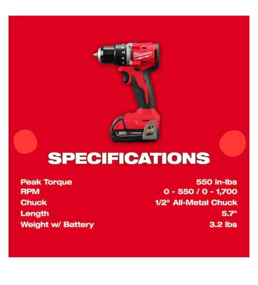 Milwaukee M18 Compact Brushless 1/2" Drill Driver Kit (3601-21P)