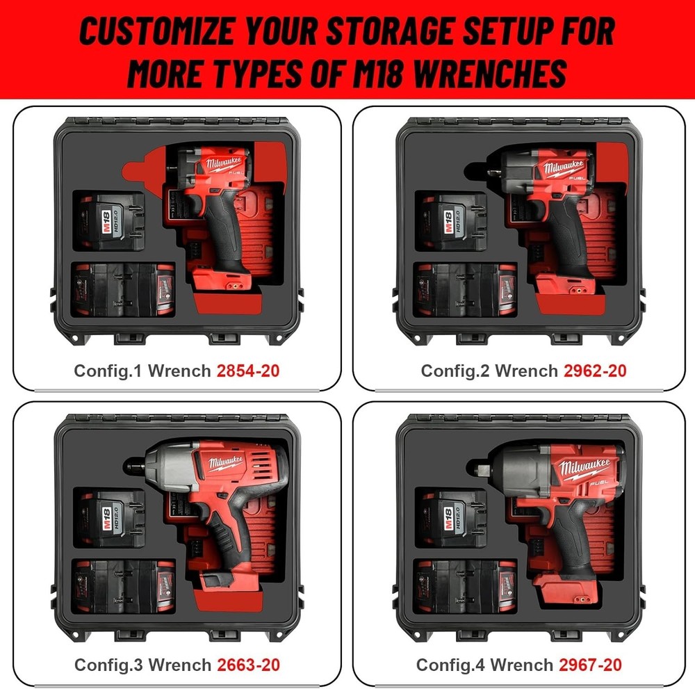 This hard case is perfect for keeping your Milwaukee M18 impact wrench and torque wrench safe! The waterproof design is tough enough for job sites, and the snug fit protects against bumps and drops. It has plenty of space for batteries and a charger tooβgreat organization without any bulk. Durable, well-built, and exactly what I needed to keep my tools secure on the go. Highly recommend for anyone with M18 tools!