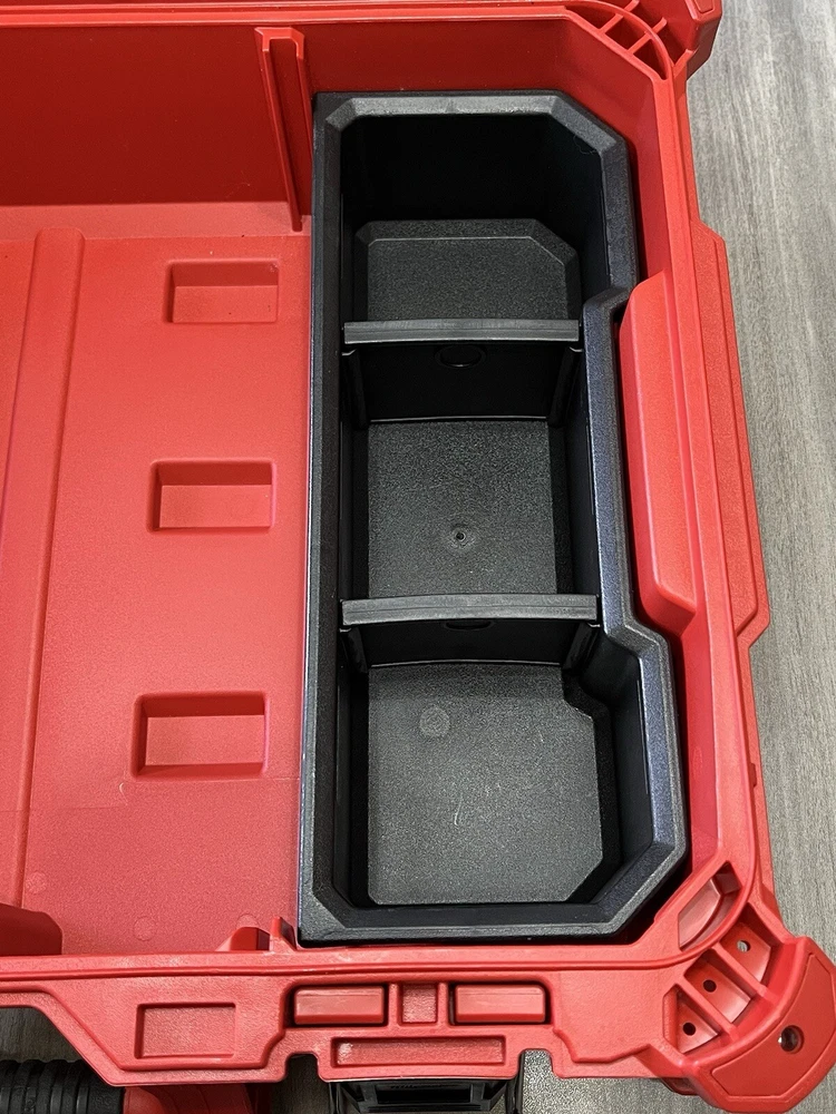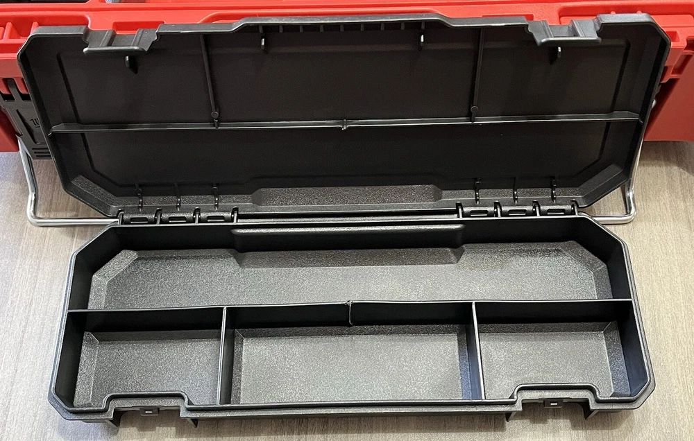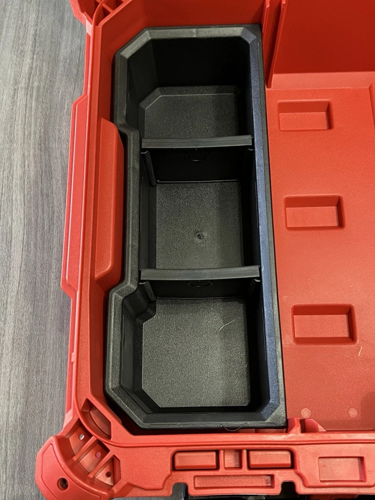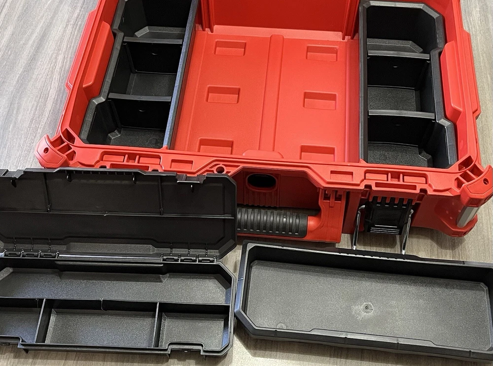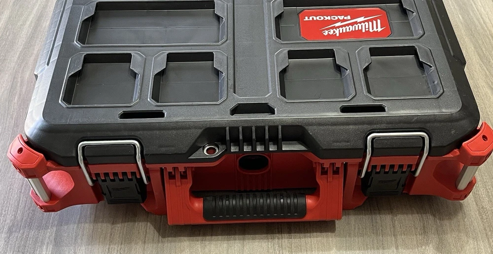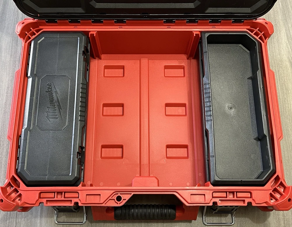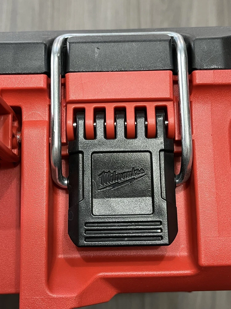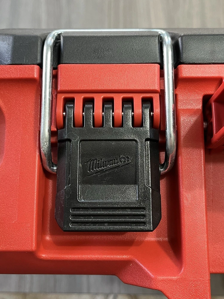 Model Number 48-22-8424 Milwaukee Packout Tool/Storage Case - Red Medium 22" 75lb Capacity New Open Box. With 2 Removable Divided Trays, 1 Removable Open Tray & 1 Removable Divided Storage Container With Latching Lid. Tool Box Was Removed From Packaging With Intentions Of Being Used, But Never Used. Ships With UPS Ground Same Day Or Next. Message Us If You Have Any Questions We're Always Happy To Help! Website Desription: About This Product The PACKOUT modular storage system is the industry's most durable and versatile storage system. The PACKOUT tool box is constructed with impact resistant polymers and metal reinforced corners so it can withstand harsh jobsite environments. The tool storage box connects with all other PACKOUT system components via integrated locking cleats and features a 75 lbs. of weight capacity. An IP65 rated weather seal protects tools and accessories from rain and other jobsite debris. Interior organizer trays allow users to keep equipment organized to fit their needs. A carry handle and reinforced hinges ensure the tool box is easily transportable wherever it is needed. The PACKOUT modular storage allows users to customize and build their own storage system to easily transport and organize tools and accessories.