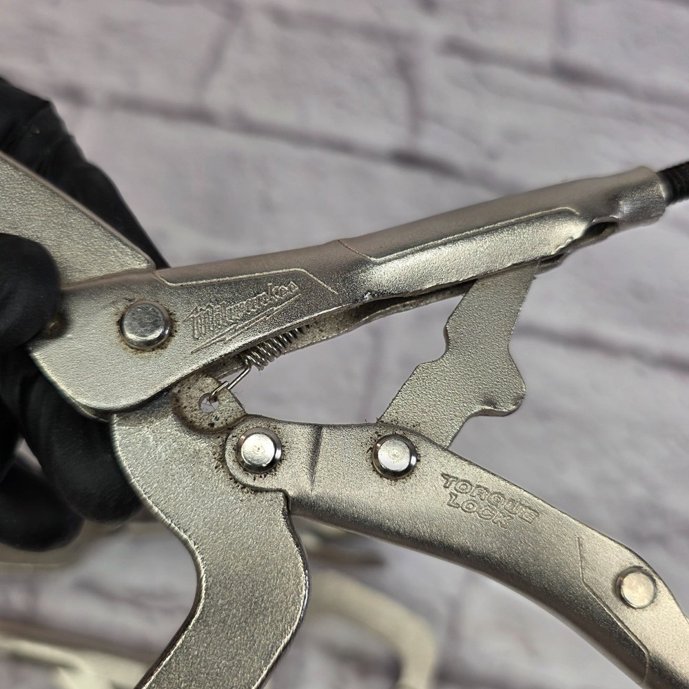 UPC: n/a Seller Notes: “Minor rust visible on metallic components.” Material: Steel, Alloy Steel Color: Silver Brand: Milwaukee Country of Origin: United States Size: N/A gtin13: n/a Type: C-Clamp MPN: 48223531