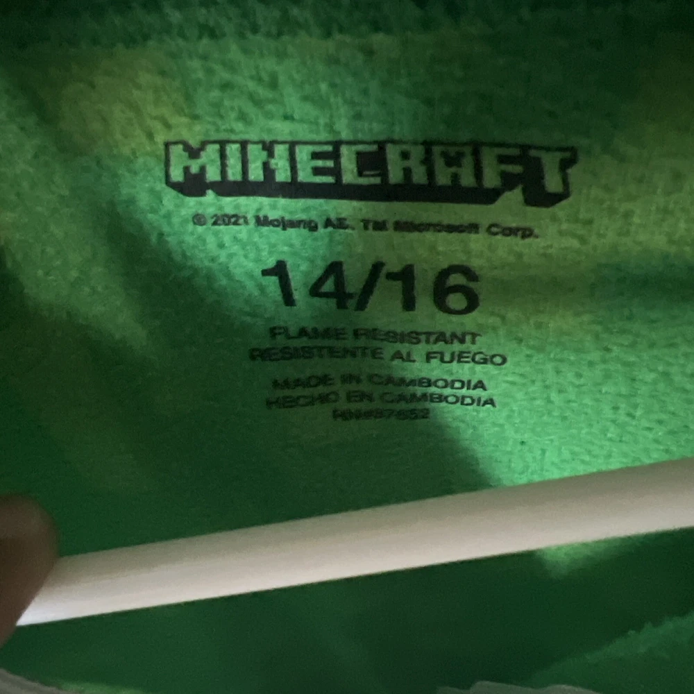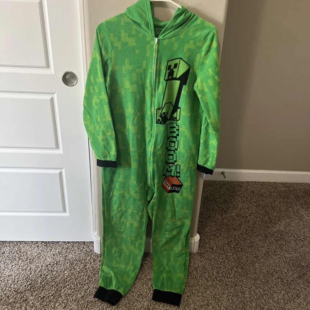 Get your little Minecraft fan ready for bed with these green Minecraft onesie pajamas. Made from 100% polyester, these comfortable pajamas feature the iconic Minecraft character and are perfect for both boys and girls in size 14/16. The one-piece design ensures that your child stays warm and cozy all night long. These Minecraft pajamas are perfect for any young gamer who loves to play and explore in the Overworld, the Nether, the End, or beyond. Whether your child is a fan of the Minecraft game or just loves the iconic character, these pajamas are sure to be a hit. Get your hands on these Minecraft onesie pajamas today and give your child a comfortable and stylish way to end their day.