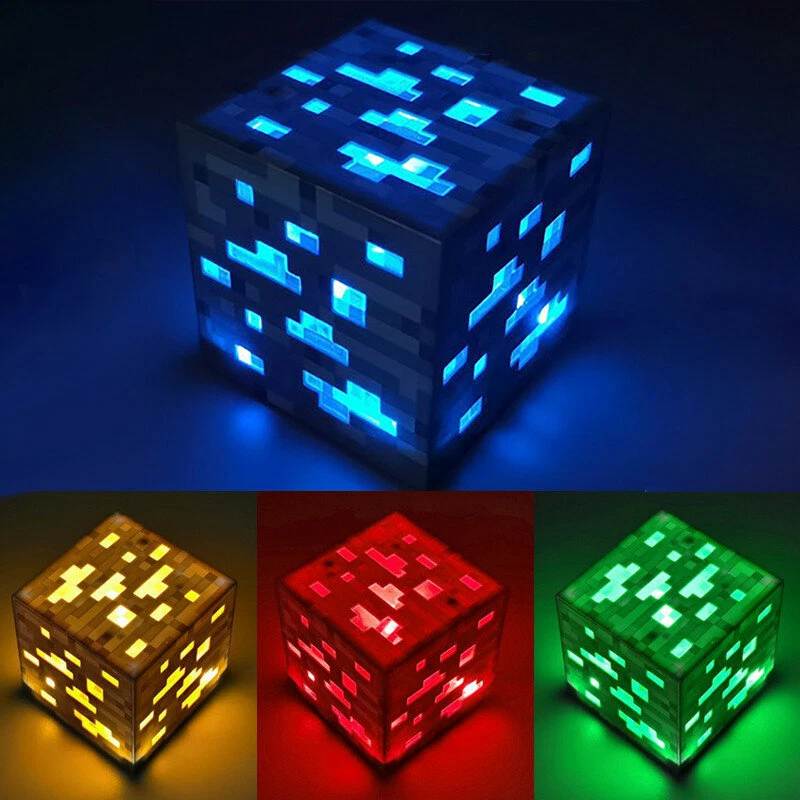 Minecraft LED Night Light Interactive Lamp Blue Xmas Building Block Rechargable Mojang Minecraft Ore Night Light Interactive LED Lamp - Diamond/Redstone/Gold/Emerald Features : Prepare for adventure: Use this light to keep out hostile creatures. These unique decorative ore blocks have bright LED lights, which can be used as a standing light, night light or table decoration. This bulb has a battery life of 8 hours and has a convenient charging indicator that can be charged for 3.5 hours. Switch control, battery powered LED night light, easy to use 4 optional light colors can be selected, great gift for kids, friends, for Minecraft lover (Christmas Gifts; Birthday Gifts) Specification : Material: ABS Size: 7.5 x 7.5 x 7.5cm / 2.95 x 2.95 x 2.95in Optional light colors: Diamond/Lapis Lazuli, Redstone, Gold, Emerald Note : Please allow 0-1cm error due to manual measurement. please make sure you do not mind before you buy. Due to the difference between different monitors, the picture may not reflect the actual color of the item Brand Unbranded Type Lamp Video Game Series Minecraft Video Game Name Minecraft Character Blackout, Christmas, USB, Rechargable Features Rechargeable Colour Blue; Others contact to change