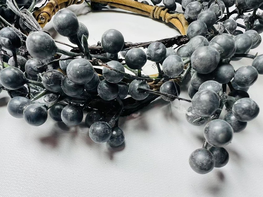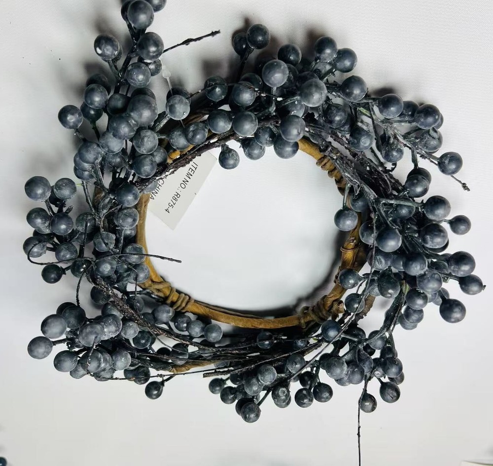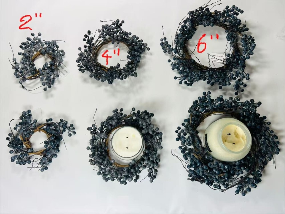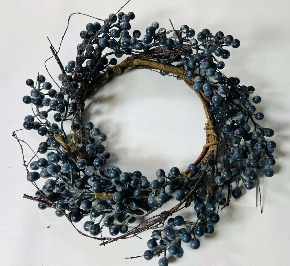 Bring rustic charm into your home with this artificial blueberry candle ring, available in 4.5 sizes. Featuring deep navy faux blueberries on flexible twigs, this mini wreath is perfect for placing around candles, jars, or small vases. Whether you’re styling for farmhouse decor, a seasonal centerpiece, or a wedding table, this handmade-style accent adds texture and color to any setting. Lightweight, reusable, and easy to shape, it’s a lovely piece for everyday or holiday use.
