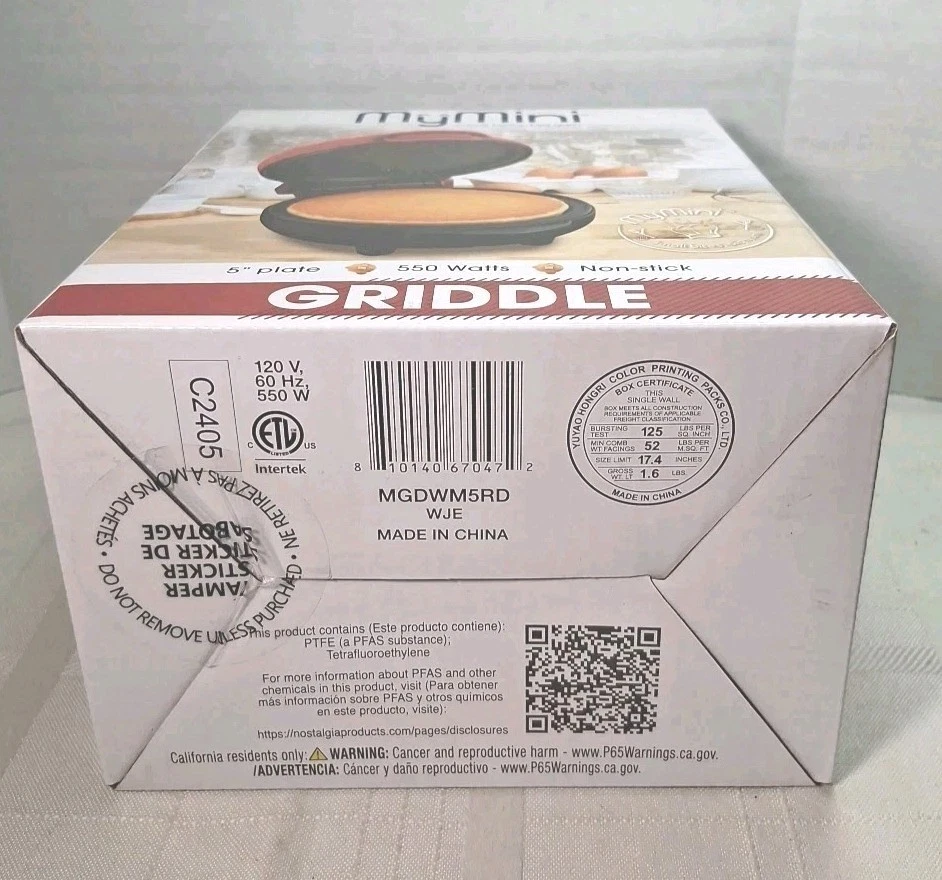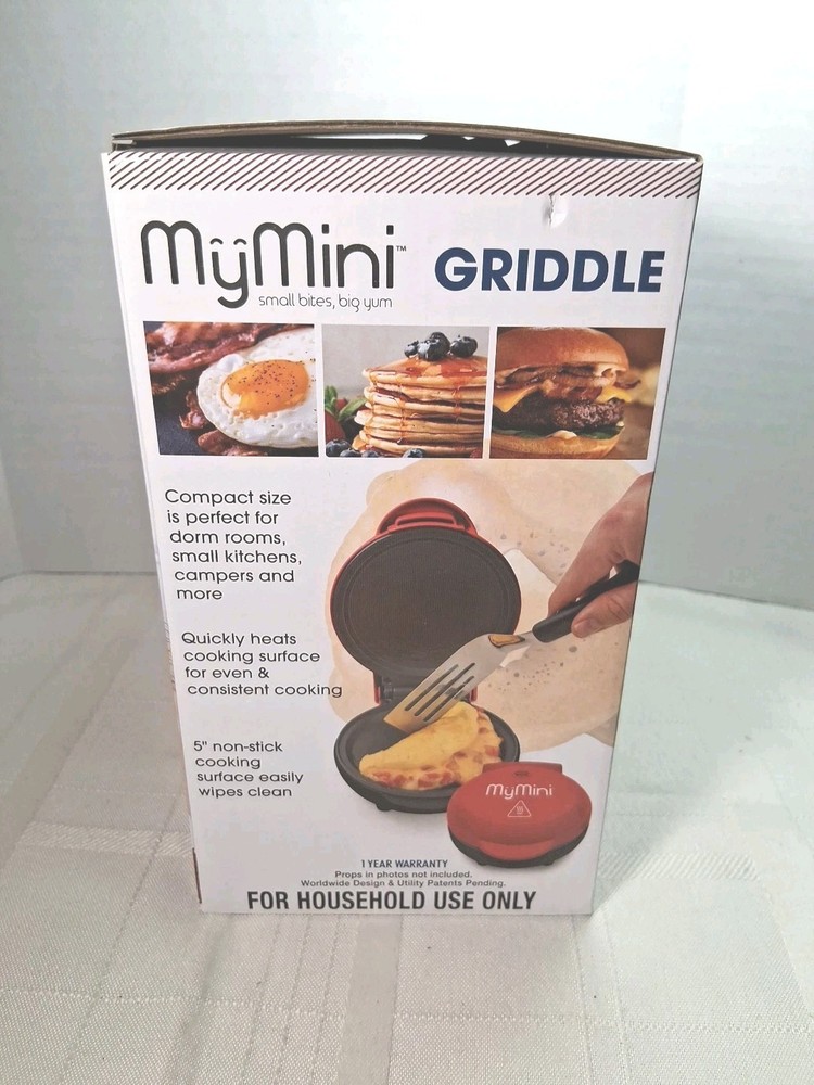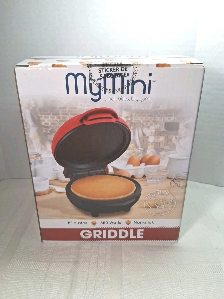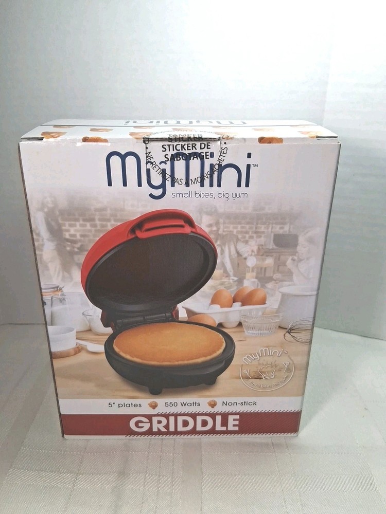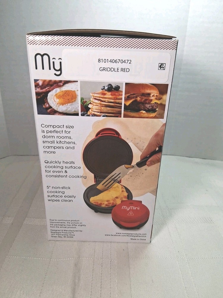New in original box My mini griddle 5 inch nonstick Never been open outside color red inside black nonstick