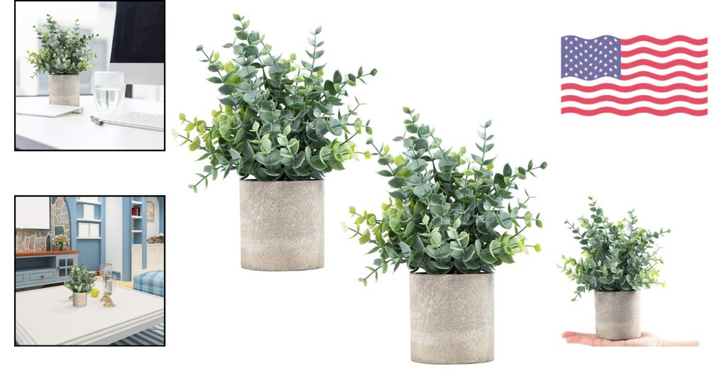 Small Fake Eucalyptus Plants - Set of 2 Potted Artificial Plants for Home Decor ‹ › ‹ › ‹ › ‹ › ‹ › ‹ › ‹ › ‹ › ‹ › Small Fake Eucalyptus Plants - Set of 2 Potted Artificial Plants for Home Decor -Safe and durable material, made of environmentally friendly plastic -Vivid colors and realistic leaves for a natural look -Comes with gray paper pulp pots for a classic appearance -No daily care needed, easy to maintain and always remain green and fresh -Can be placed on tabletop, window, office desk, shelf, farmhouse, bathroom, and dining table -Dimensions: 9.45" tall and 6" wide, pots measure 3" tall and 3" diameter -Package includes 2 packs for versatile decorating options -Perfect after-sales service for any questions or issues Benefits: Realistic and lifelike appearance No maintenance required, perfect for busy individuals Suitable for various home decor styles and locations Easy to adjust and display in any space Comes in a set of 2 for added value Safe and durable materials for long-lasting use Why choose our Small Fake Eucalyptus Plants? Looking to add a touch of greenery to your home without the hassle of maintenance? Our Small Fake Eucalyptus Plants are the perfect solution. Made of high-quality plastic with realistic leaves, these artificial plants require no daily care and always look fresh and vibrant. With their classic appearance and versatile placement options, they are a great addition to any home decor. Don't miss out on the opportunity to enjoy the beauty of nature in your home with our hassle-free artificial plants. Order your set of Small Fake Eucalyptus Plants today! Shipping Free & Fast Shipping - We offer free shipping to most of the USA with a normal delivery time of 3-7 days. However, due to the current situation, additional delivery time (up to 3 weeks) may be required for some items. Alternative Carriers - We may use alternative carriers (e.g. USPS, FedEx, UPS, etc.) to ensure your package arrives safely and on time. Due to the use of multiple carriers, we are unable to provide a tracking number automatically. Handling Time - Orders are processed and shipped within 1-2 business days of receiving cleared payment. Shipping Restrictions - Shipping to Alaska, Hawaii, Puerto Rico, Guam, and other US territories may incur shipping charges or delivery restrictions. Please contact us before ordering, or your order can be refunded/cancelled. State Restrictions - There may be restrictions based on your state of purchase. For example, certain items may not be shipped to California due to state regulations. Contact for Tracking Updates - If you require tracking updates or have any concerns about the delivery of your order, please feel free to contact us, and we will be happy to assist you. Return 30-Day Hassle-Free Returns - We want you to be completely satisfied with your purchase. If you are not, you can return the item within 30 days of receiving it for a full refund or exchange. Easy Return Process - To start a return, simply contact us and we will provide you with a prepaid return shipping label and detailed instructions. Restocking Fee - There are no restocking fees for returns. However, the buyer is responsible for return shipping costs if the return is not due to a seller's error. Refund Processing Time - Refunds will be processed within 5 business days of receiving the returned item in its original condition. Payment We accept all major credit cards, PayPal, and Apple Pay for your convenience. Your payment information is secure and encrypted to ensure a safe and seamless transaction. Please complete your payment within 3 days of purchase to avoid any delays in shipping. Feedback Your feedback is extremely important to us. We strive to provide the best products and customer service possible. If you are satisfied with your purchase, please take a moment to leave us a positive review. If you have any concerns or issues with your order, please contact us before leaving negative feedback. We are committed to resolving any problems and ensuring your satisfaction. Contact Us If you have any questions or concerns, please feel free to reach out to our customer support team. You can contact us through the eBay messaging system. We are available Monday to Friday, 9:00 am to 5:00 pm EST, and we will do our best to respond to your inquiry within 24 hours. Thank you for supporting our small family business!
