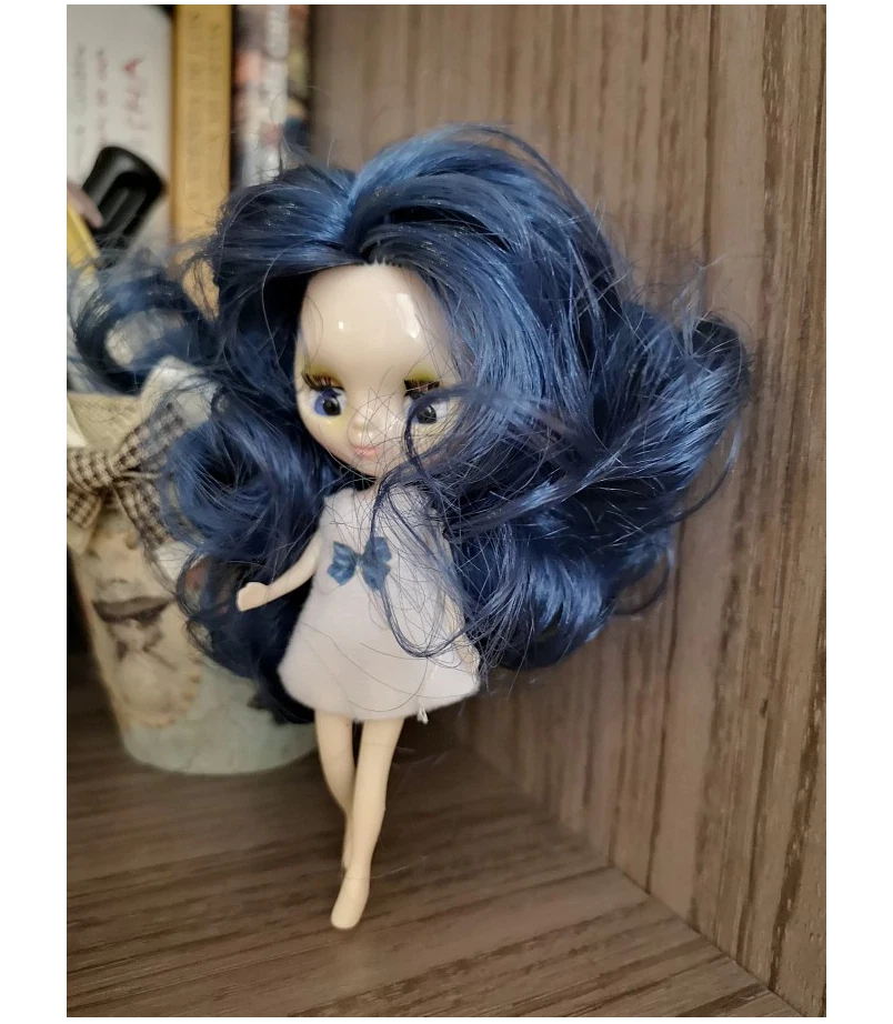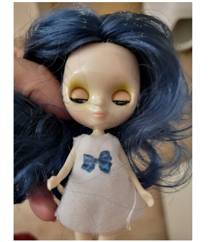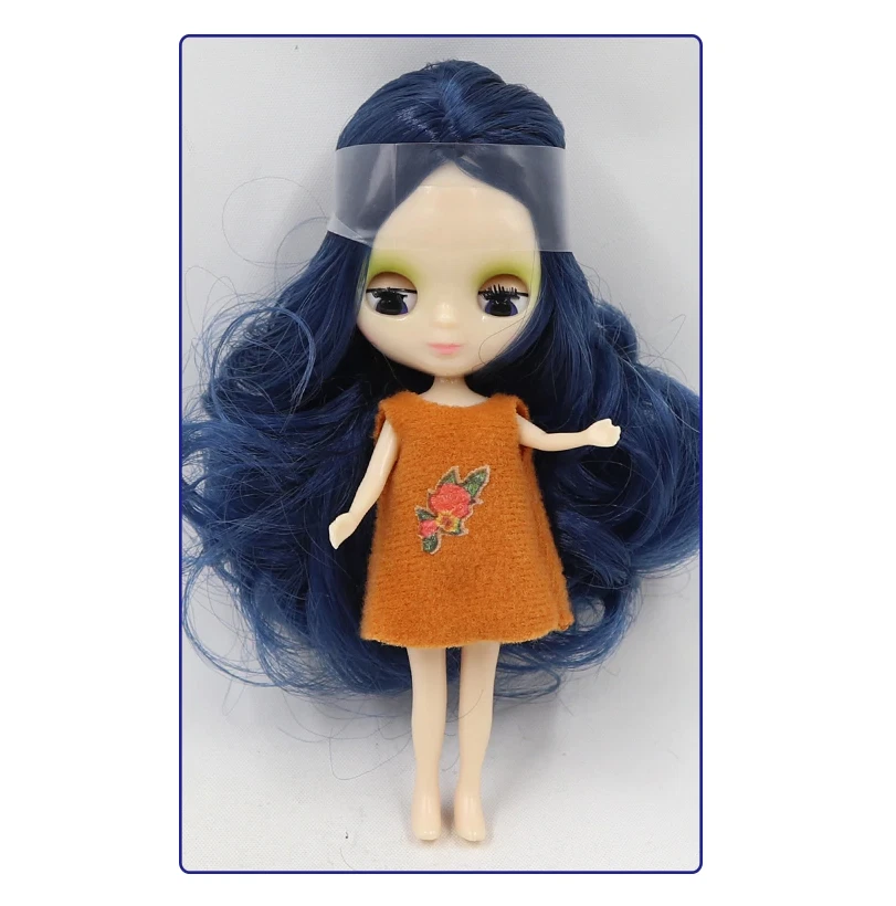 Fashion 4" Mini Blythe Doll Normal Body Shiny Face Blue Hair Eyes Close DIY Toys This is a 4" (10cm) mini doll . Her eyes would close when the doll laid down and open when stand up . Mini doll will give you Dress (random dress) as gift for FREE .