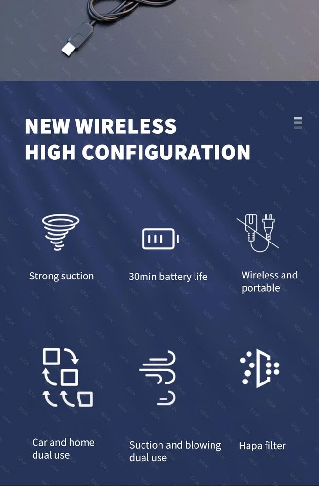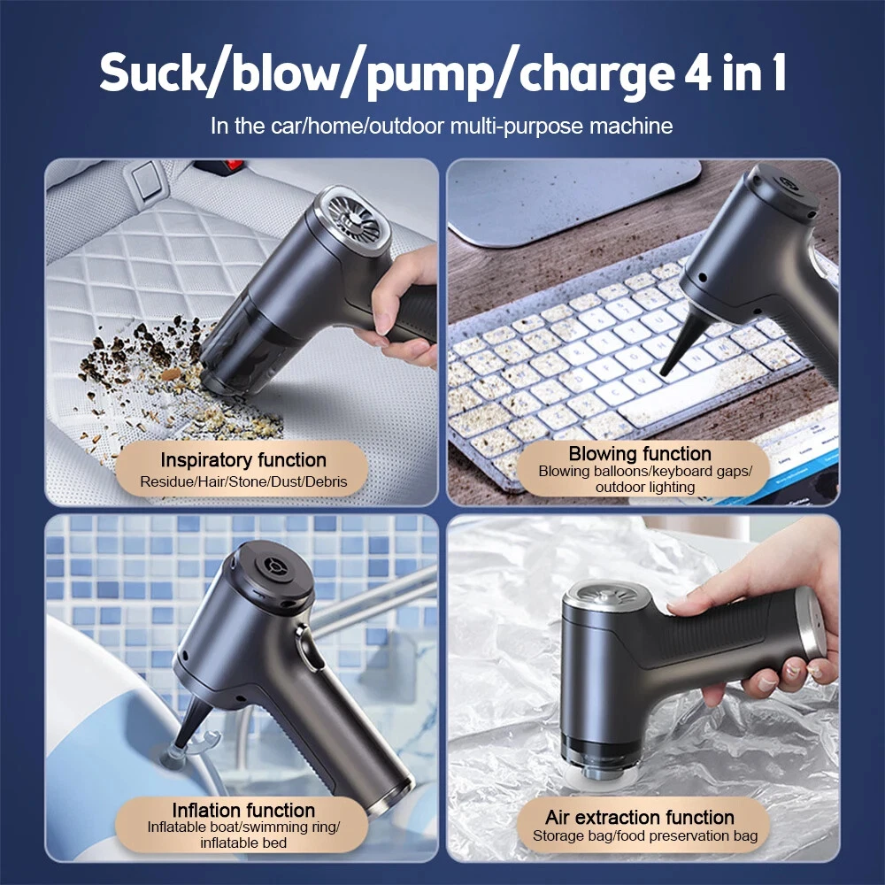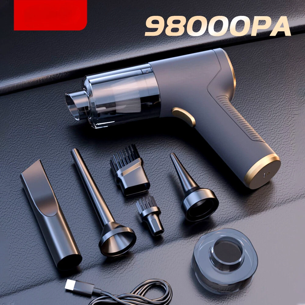 Mini Car Vacuum Cleaner Portable Wireless Handheld Cleaner for Home Appliance Poweful Cleaning Machine Car Cleaner for Keyboard 【Basic version】 [Product material]: ABS [Motor]: Ordinary motor [Vacuum degree]: 8000PA [Rated speed]: 15500rpm [Capacity of lithium battery]: 2 * 2000mAh [Charging mode]: Type-C charging line [Noise]: ≤ 52dB [Operating temperature]: - 20 ℃~+50 ℃ [Package list]: vacuum cleaner X1 Accessories X 6 Charging line X1 User manualX1 [weight]:550g 【Updated version】 [Product material]: ABS [Motor]: New upgrated Brushless motor [Vacuum degree]: 98000PA [Rated speed]: 35500rpm [Capacity of lithium battery]: 2 * 2000mAh [Charging mode]: Type-C charging line [Noise]: ≤ 52dB [Operating temperature]: - 20 ℃~+50 ℃ [Package list]: vacuum cleaner X1 Accessories X 6 Charging line X1 User manualX1 [weight]:600g Version introduction Introduction [Product Name]: Handheld Vehicle Vacuum Cleaner [Product functions]:mainly cleaning cars, vacuuming, blowing dust, blowing balloons and so on
