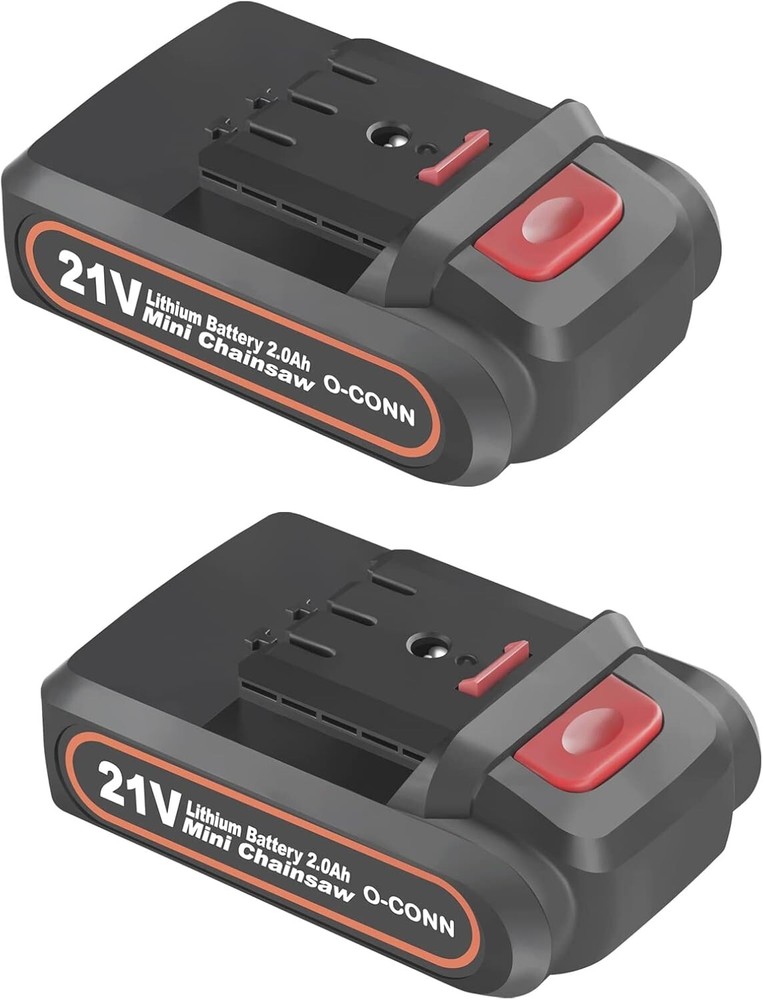Mini Chainsaw Battery , 2 Pack 21V MAX 2000mAh Rechargeable Battery, Cordless Electric Portable Handheld Chainsaw Accessories Model 1 NOTE: Please check if your original battery interface is consistent with our battery before purchase (refer to pic 3). Can also be used to replace 20V, 21V, 24V, 26V, 28V and 36V battery. NOTE: Due to technical issues, we are unable to update our A+ Content images. Please note that our batteries are 21V MAX, not 24V. We are contacting to resolve this issue, thank you for your understanding. Large Capacity Battery: 2 pack 21V MAX 2000mAh mini chainsaw rechargeable battery . Working Time: 20-30min. Charging Time: 2h-3h. Quality Service: We provide 24×7 after-sales support service to solve any of your worries, please feel free to contact me.