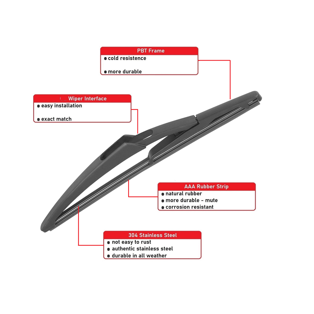Absolutely love these wiper blades for my Mini Cooper S—perfect OEM fit just like stock! The rubber is durable, the spring pressure keeps them firmly in place, and they clear the rear window flawlessly even in heavy rain. No streaks or skipping, and they blend seamlessly with my R56’s design. Installation took seconds, and the difference is night-and-day compared to my old worn-out set. Highly recommend!