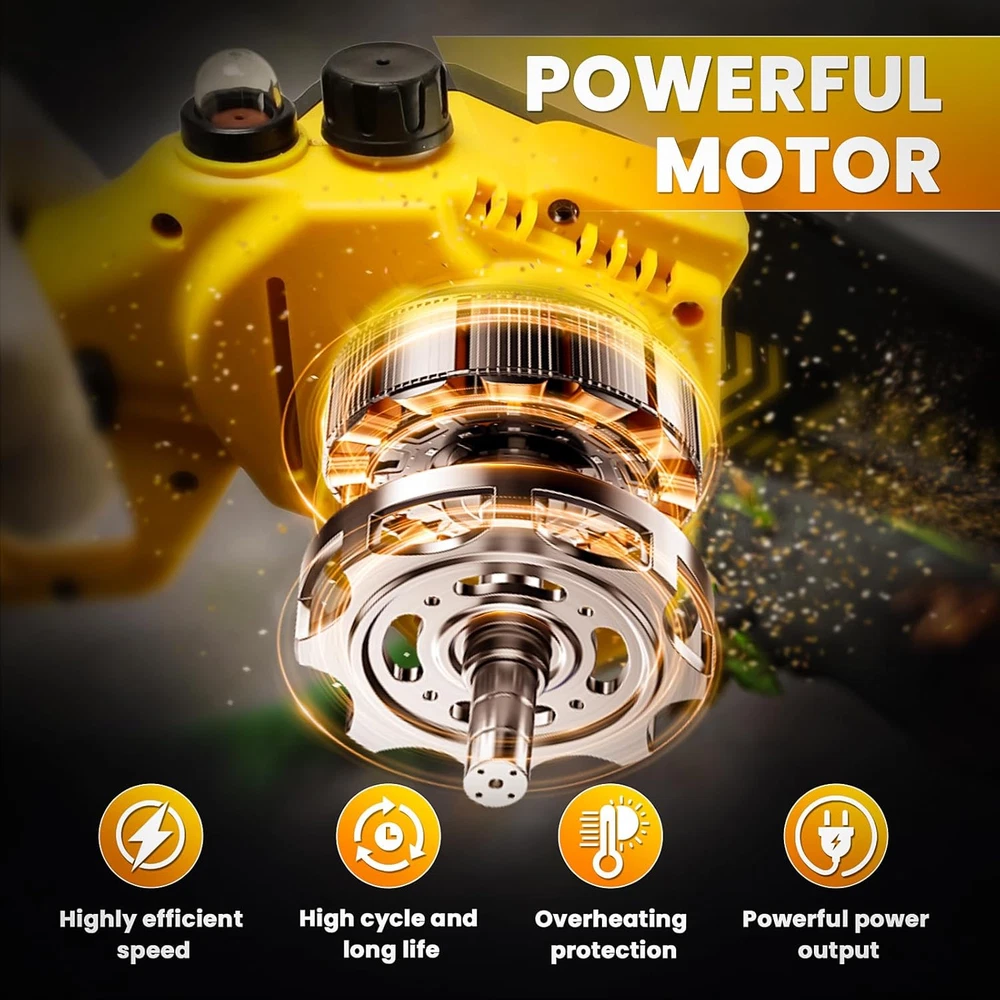 This mini chainsaw is a game-changer for quick yard work! The auto-oiling system keeps the chain running smoothly without extra effort, and the battery lasts long enough to tackle multiple jobs. Lightweight yet powerful, it cuts through branches like butter—perfect for anyone who needs a compact, no-fuss tool. The quick-release battery makes recharging a breeze. Highly recommend for easy, efficient cutting!