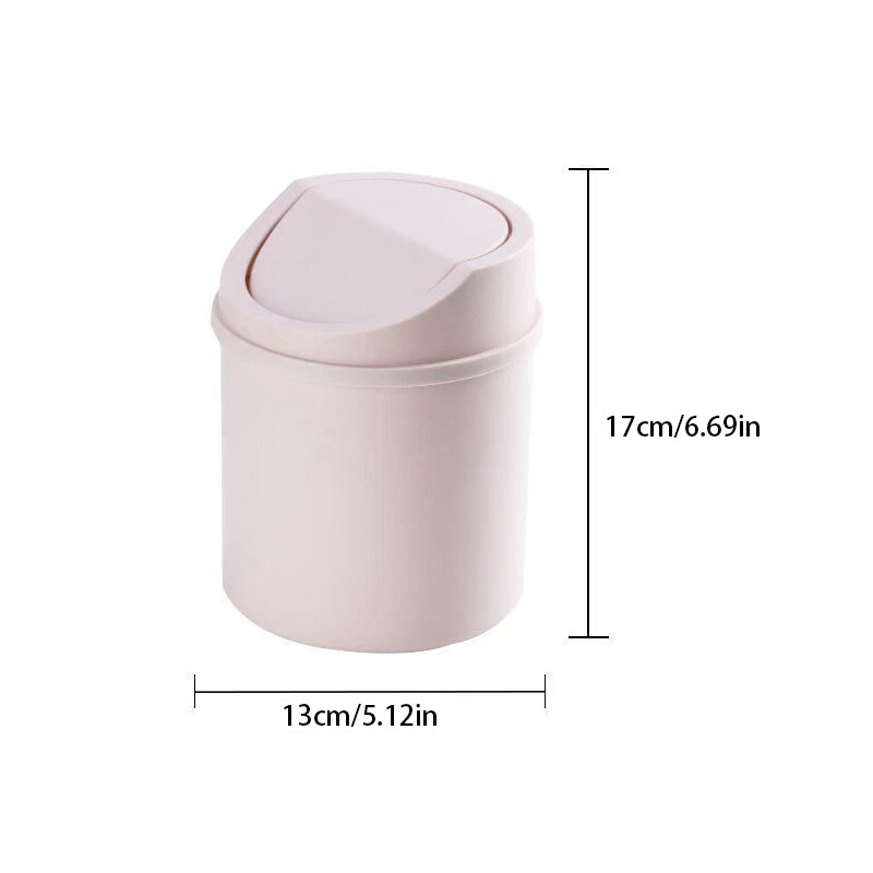 Features: Simple and compact. Does not take up big space. Easy to flip. Flip buckle, easy and flexible. It's not just a trash can. It is an ornament on your desk. Simple design, beautiful appearance. Made of PP material, smooth, strong and durable. This small trash can fits most office desktops, countertops and tables. Specifications: Material: PP Color: White,gray,pink Size: 13*17cm Package contains: 1pc Small Trash Can Note: Please allow slight dimension difference due to different manual measurement. Please note that slight color difference should be acceptable due to the light and screen.