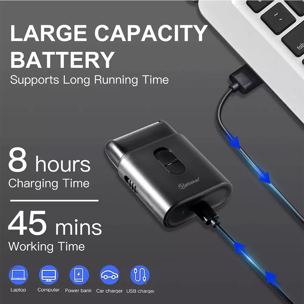 Department: Men Item Weight: 2 lb Body Area: Back, Body, Face, Pubic Type: Travel Shaver Color: Black Item Length: 3 in Number of Heads: 1 Power Source: USB Charging Motor Type: Magnetic Country/Region of Manufacture: China Features: Adjustable Speed, Built-In Moisturizing System, Cleaning Indicator, Cleaning System, Cordless, Dual Voltage, Folding Blade, Hair Trimmer Option, Low Battery Indicator, Pivoting Head, Quick Charging Time, Rechargeable, Smartlight, Swivel Cord, Travel Case, Travel Size, Washable, Waterproof, Wet/Dry Brand: Hatteker Head Type: Beard Trimmer
