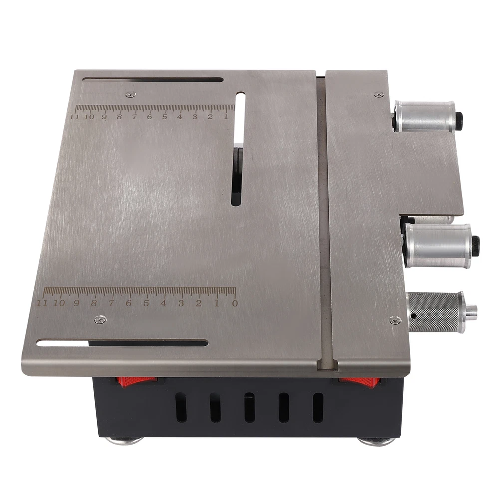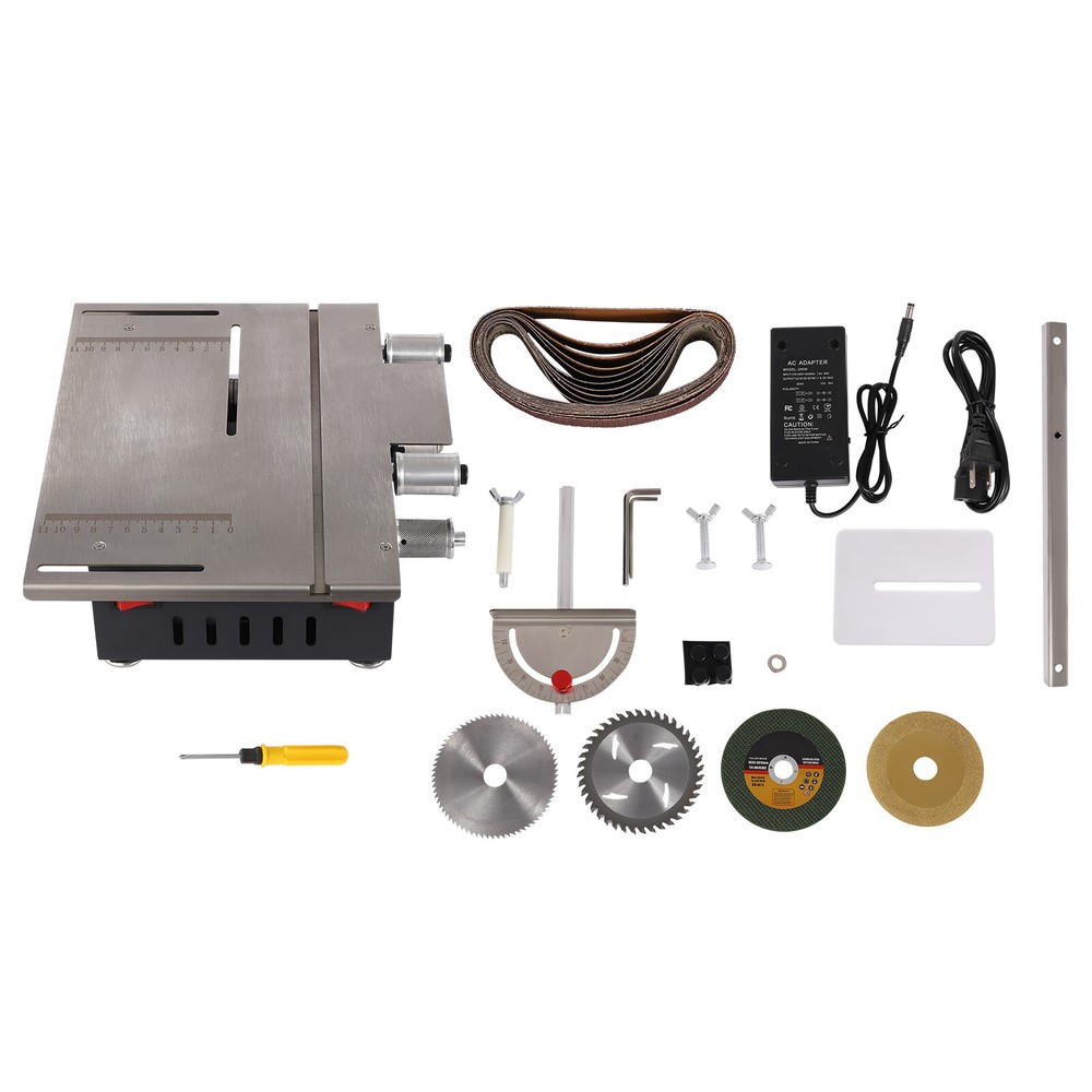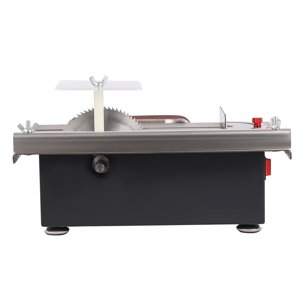 Mini Electric Table Saw Bench Circular Blade Woodworking Cutting Tool Machine US Description A good tool is indispensable for tedious cutting work. Our table saw is made of various high-quality materials and undergoes fine craftsmanship to ensure your long-term use. Good performance and complete accessories can make your cutting work more efficient, and a series of protective designs can enhance your usage safety. It will be a good helper in your work. Key Features Build to Last: Premium cold-rolled steel, acrylic, stainless steel, iron, rubber, and plastic spraying process make the product solid and durable, so it can remain beautiful and practical for a long time. Powerful and Efficient: The 200W pure copper dual-axis motor with low energy consumption and less noise, 4 sharp saw blades, 10000r/min high speed, and 33mm maximum cutting depth can provide strong power for your cutting work, thus improving your efficiency, and reducing the unsightliness and material damage caused by manual cutting. High-precision Work: The precision drilling collet has a clamping range of 0.06-0.39inch, and the soft shaft clamping range is 0.02-0.13inch. The scale printed with screen printing technology is not easy to fade, ensuring cutting accuracy. Adjustable Design: It features a push-pull slide design, 0-90° adjustable angles, and 7-gear adjustable speeds, ensuring accurate and flexible operation for higher production quality. Strong Stability: The horizontal design and four rubber foot pads keep the center of gravity at the bottom, maintain the stability of the product during operation, avoid displacement, and ensure smoother operation. Safety Guard: The clear baffle prevents debris from entering your eyes or the blades from hurting your hands while allowing you to see the whole production process. The heat dissipation holes can timely reduce the temperature of the product during operation, avoid safety accidents, and extend the product’s service life. Great Applicability: Our product features a two-in-one belt sander and table saw that is easy to operate, making it a miniature machine that can be used for both home and industry. The premium table saw can meet the cutting of wood, stone, bamboo, plastic, aluminum bars, etc. The precision belt sander can carry out the sanding of knives, wood, stone, bamboo, etc., as well as the sanding and peeling of linden. Simple Installation: The simple structure, complete accessories, and detailed English manual allow you to complete the installation and start using it in a short time. Labor-saving Cleaning: The smooth surface and removable design allow you to easily clean the dust and debris with a soft towel. Compact and Lightweight: A small size of 11.42*10*3.94inch and a net weight of 11.46 lbs lets you easily store and take it to any workplace. Compared with the clumsy and unsafe large table saw, this mini table saw is more convenient and safe. Ideal Gift: This high-performance and practical product is an ideal gift choice for carpenters, DIY professionals, and others. Details Round Corners: The arc design can effectively care for your skin compared with the traditional square corners to improve the safety of use. Robust Screws: Multiple screws make the product connection more secure and less prone to detachment. Application It can be used to cut small wooden sticks, bodhi seeds, beeswax, plastics, PCB boards, PVC, light wood flooring, acrylic, bamboo sheets, etc, and is widely used in creative production, woodworking decoration, handicraft manufacturing, and creative development of various projects in fields such as homes and DIY studios. It is an ideal choice for carpenters, DIY professionals, and others. Specification Color: Silver Style: Modern Shape: Rectangular Assembly Required: Yes Mount Type: Countertop Material: Cold-rolled Steel, Stainless Steel, Acrylic, Iron, Rubber Motor Type: Pure Copper Dual-axis Motor Surface Treatment: Plastic Spraying, Screen Print Indoor/Outdoor Use: Indoor Power Source: Corded Electric Plug Type: US Standard Power: 200W Input: 110-240V 50/60Hz 1.8A MAX Output: 12/15/16/18/19V 9.5A MAX; 20/24V 8.5A MAX No-loading Speed: 10000r/min Adjustable Speed: 7 Gears Angle Adjustment: 0-90° Saw Blade Size: 105*1*16mm/4.13*0.04*0.63inch, 100*1.5*20mm/3.94*0.06*0.79inch, 110*0.8*20mm/4.33*0.03*0.79inch, 110*2*20mm/4.33*0.08*0.79inch Maximum Cutting Depth: 33mm/1.3inch Suitable Sand Belt Size: 30*420mm/1.18*16.54inch Collet Clamping Range: 1.5-10mm/0.06-0.39inch Soft Shaft Clamping Range: 0.6-3.2mm/0.02-0.13inch Power Cord Length: 1.2m/3.94ft Gross Weight: 6kg/13.23lbs Net Weight: 5.2kg/11.46lbs Package Size: 34.5*32*20cm/13.58*12.6*7.87inch Product Size: 29*25.5*10cm/11.42*10*3.94inch Package Included 1* Mini Table Saw 4* Saw Blades 10* Sand Belts 1* Baffle 1* Adapter 1* Power Cord 1* English Manual Other Accessories for Installation Notes Please strictly follow the instructions for installation and use, and pay attention to the safety precautions inside. Please keep your hands away from the saw blade during work. Please be cautious of potential electrical safety hazards, take necessary personal protective measures, such as goggles, and keep this product out of reach of children on a daily basis. Please do not remove the cover of the adapter. Please use this product indoors. Please note that our table saw cannot be used to cut hard stone, jade, iron, steel, and other high-hardness metal materials. Please note that this product does not have saw blade lifting and forward and reverse rotation functions. Please allow the slight color difference caused by the shooting light and 1-3cm error due to manual measurement, and make sure you do not mind before ordering. Payment Delivery details Terms of sales About us Contact us Payment We accept ebay payment 。 Fees such as import duties, taxes are not included in the item price or shipping costs. These charges are the buyer's responsibility. Delivery details Shipping: 2-9 working days to: USA