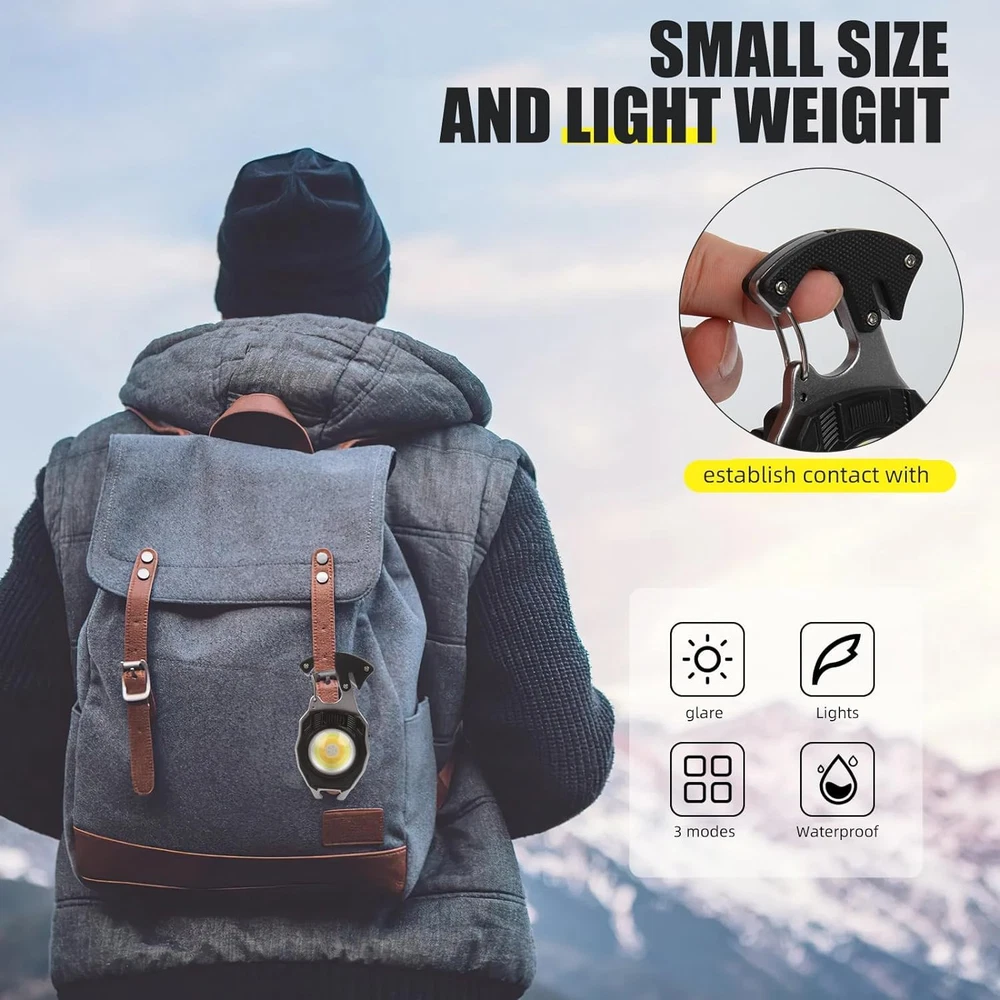 【High Lumen Flashlight】: This keychain edc flashlight adopts advanced COB technology LED chip, which has strong penetrating power, it can emit 1000 high lumen bright floodlight, we can walk easily on the dark road. Mini flashlight is made of high-quality aluminum alloy material, IPX6 waterproof, durable, impact-resistant, not easy to rust and break, we can use it for a long time 【3 light source lighting】: magnetic flashlight Portable pocket light has 3 light source lighting (COB red light, COB white light, COB yellow light), we can adjust multiple gears according to needs. It can easily switch the light mode with the push of a button, which is very convenient for us to use. The LED flashlight has red light and red strobe mode, it can provide warning lighting when camping, foggy or emergency 【Multifunctional Mini Flashlight】: emergency flashlight has two types of screwdrivers (Phillips, Slotted), which can be used at any time, and it can easily solve field repair problems. The seat belt cutter can be used to cut off the seat belt in an emergency. The rechargeable flashlight has a back selection bracket, which can freely adjust the angle by 180°. Cigarette lighting function on the back, it is safe and not hot 【USB Rechargeable】: This COB keychain work light has a built-in large-capacity rechargeable battery, it can be charged through the type C port, and the running time is 2-3 hours. The blue light flashes when charging, and the blue light stays on when fully charged. The small flashlight has an aluminum alloy bottle opener and a hidden whistle port, which makes our outdoor camping more convenient 【 Multi purpose 】: The mini LED flashlight has a sturdy adsorption base that can be connected to any metal, allowing us to perfectly free our hands. This flashlight features a spring lock design that can be easily secured to a key or bag, allowing us to use it anytime and anywhere in emergency situations. This keychain flashlight is small and lightweight, suitable for camping, dog walking, fishing, hiking, and searching