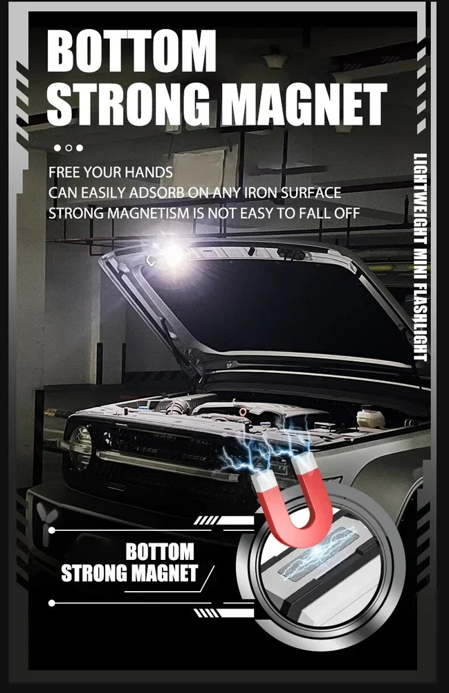 Mini Flashlight LED COB Magnetic Work Torch Light USB Rechargeable Portable NEW