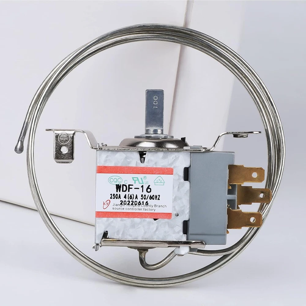 The Mini Fridge Thermostat 3 Pin WDF-16,Compatible with a variety of different brands of refrigerators, as long as they are installed the same way. When your refrigerator is broken due to the bridge thermostat controller, after replacing the WDF-16,it will solve the problem that the compressor does not stop automatically and the refrigerator is severely frozen. FRIDGE THERMOSTAT CONTROLLER WIDELY APPLICATION:Control the temperature of fridge, freezer, display cabinet, congealer, beverage cooler and similar product. 3 Pin Thermostat Controller Compatible with WDF-18, WDF-20(250V replaceable 110V 4(6)A 50/60Hz,Obtained three quality certifications,Reliable quality, same price, better choice. Product Description