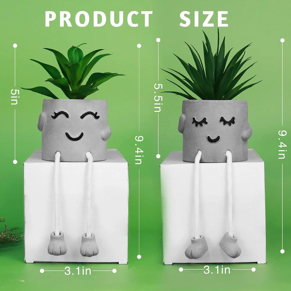 Product Description 🎁🎁Set of 2 Lifelike Artificial Plants with Pot: Our artificial succulent plants looks real enough and are more lifelike naturalistic than others due to advanced PE material leaf. Interesting creative pot with simulated soil, are the perfect simple greenery to liven up any space. 🍃🍃Artificial Plants & Flowers Home Decorations: Our faux plants indoors are great for apartment decor since they are small and convenient. Our vintage looking artificial plants will add contrast to areas like your coffee table, shelf, window, or bathroom. Boho mantle decorations and rustic decor is the new current trend. 🌹🌹Delicate Design: Nice simple clean design to go with any decor style; mini fake plants would be a great accent piece in any room; you will get lots of compliments for these small plants decor. ❤❤Long-Time Lasting: Our Fake Mini Succulent Plants No need to maintain or care for them, neither will die nor fades, which remains just as fresh-looking and beautiful year after year; Please don't put the artificial succulent plants in the water. 🌸🌸Home and Office Decor: Fake Succulents Perfect to display on shelves, on your bookshelf, living room mantle, coffee table, dining room table, cabinet, counter space, desk, kitchen, window ledge, foyer and any other place to bring more lifelike colors and organic style. Zerzsy Home Decor Put it in a place where you will catch a glimpse inadvertently, and surprise you or your families in some unexpected instant. Life is always busy and fulfilling. Many times we get lost in the busyness and haven't given ourselves an encouraging smile for a long time. They will add a bit of fun to your life, allowing you to stop for a few seconds, adjust your mindset, and get back on the busy with relax. These beautiful artificial plants with pots match with different decor styles, perfect for decorating small spaces, mantles, bookshelves, side tables, night stands, desks, coffee tables and more. Buyer Show So adorable! Looks great on a set of little Shelves! Great finishing pieces to an accent wall Super Cute they are truly that cute! S o cute They are very sturdy and heavy. E veryone in the office loves them.