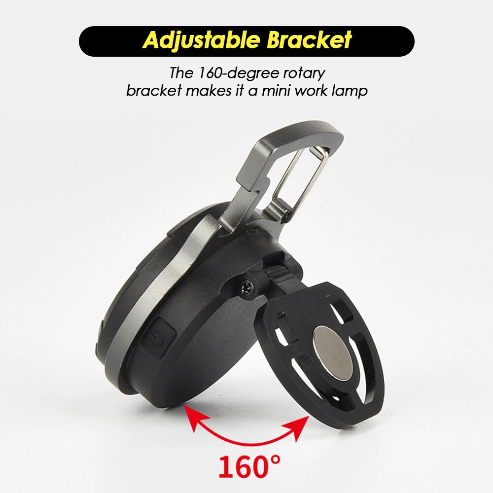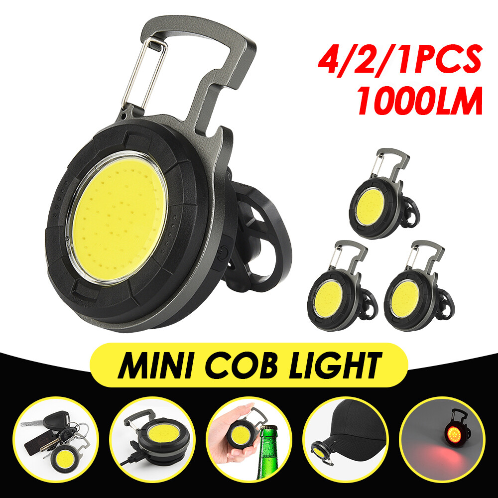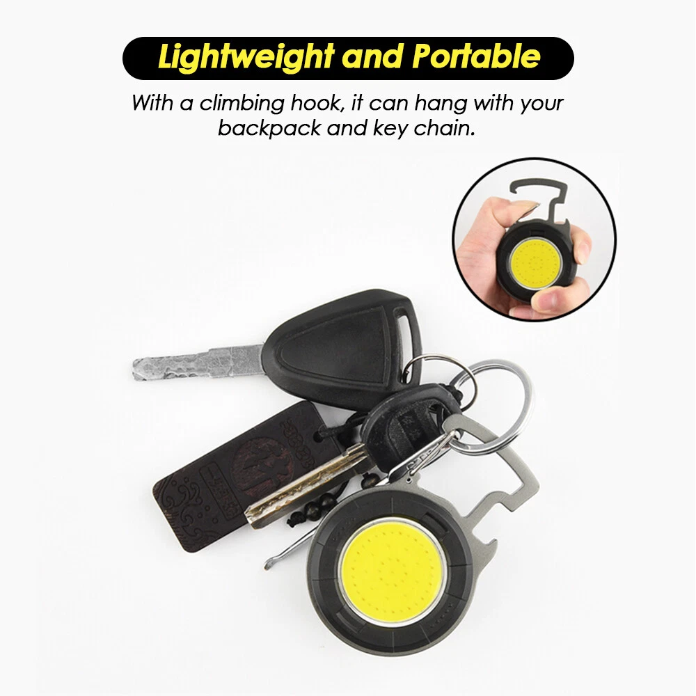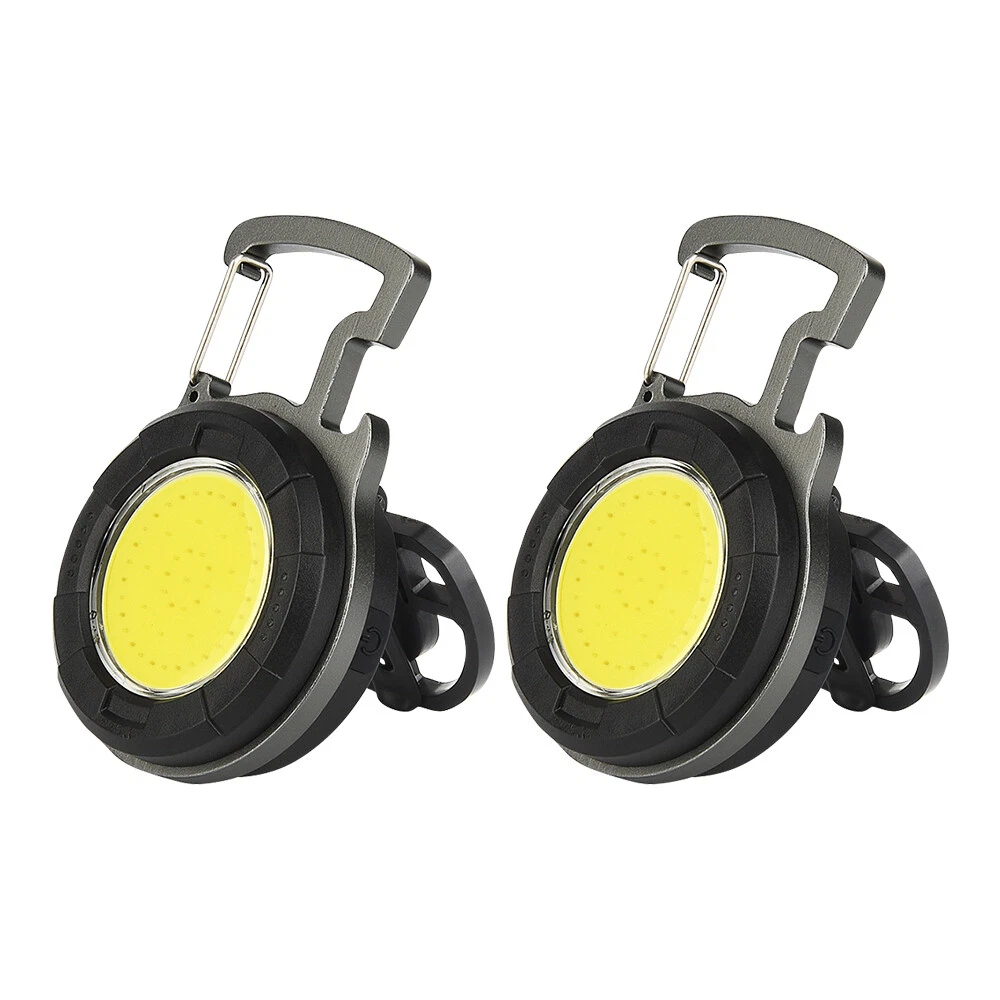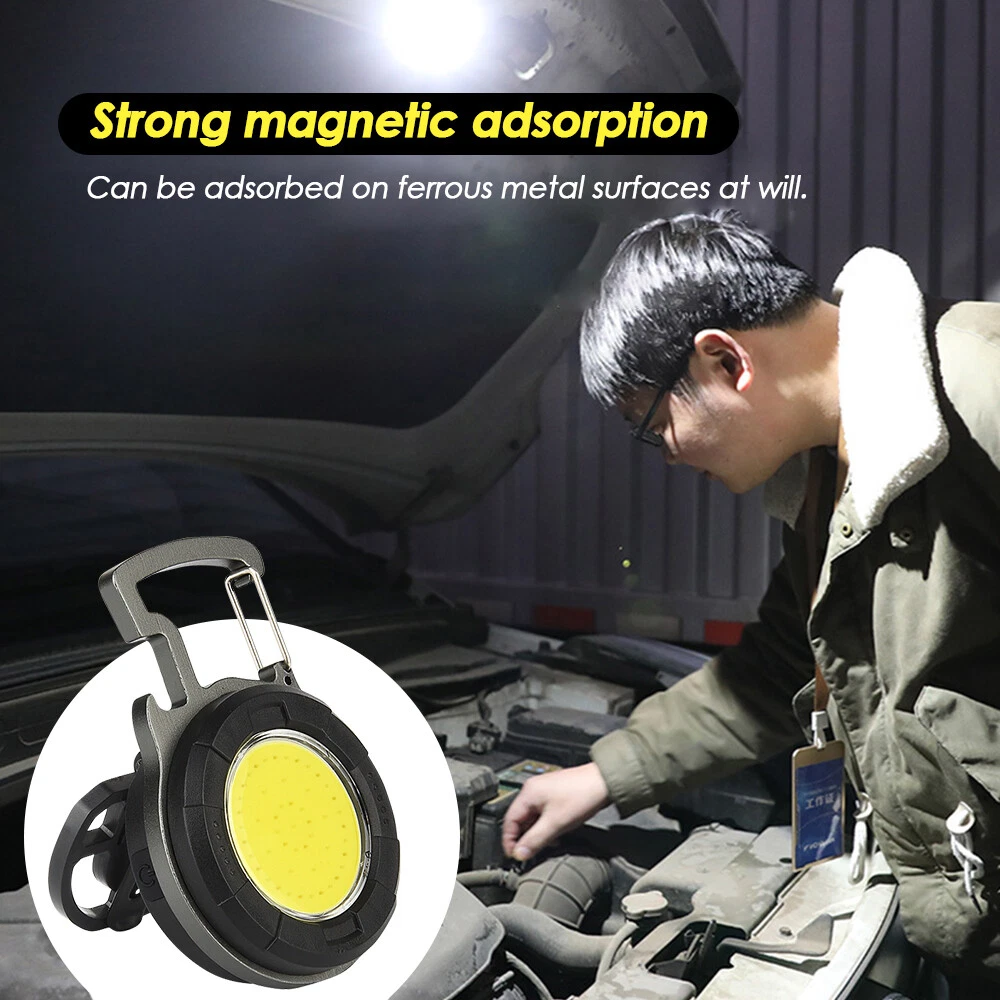 Mini COB Work Light Pocket Lamp Portable LED Flashlight USB Rechargeable Keychain Corkscrew with Magnet 4 Light Modes for Camping Outdoor Fishing Feature: 1. Super Bright COB Light: This keychain LED flashlight provides 1000lumens at maximum. At night, it can create a bright enough environment for you, which is applicable for night fishing, outing, camping, road upkeep, etc. 2. Easy to Carry and Place: Lightweight and equipped with a carabiner, the mini LED pocket lamp can hang in a key chain and be carried anywhere. This small work light of magnetic type can attach to any metal, and 160°adjustable bracket on the back allows you to position the light at different angles or hang it somewhere. 3. 4 Lighting Modes: 4 work modes that include white light 80% brightness, white light 40% brightness, red light on and red light flashing meet your different needs. 4. USB Rechargeable: The keychain flashlight is powered by built-in 650mAh polymer battery, which can light up for 2 hours after fully charged for 1.5 hours. It can be charged by car charger, laptop, adaptor and power bank. 5. More Usage: You can use it as a corkscrew, or a head light by fixing it on your hat. Specification: Type: Mini COB Light Battery: 1* 3.7V 650mAh polymer battery Charging Time: 1.5 hours Lighting Time: 2 hours Lumen: 1000lumens Size: 61*46*21mm Package Included 1/2/4 * COB Work Light 1/2/4 * USB Charging Cable Item Specifics Brand : Unbranded Type : Flashlight Features : Rechargeable, Waterproof, Lightweight, Portable,4 MODES Power Source : USB Voltage : 3.7 V Lighting Technology : LED Color : Black Battery Included : Yes Operating Time : 1-5 Hours Lumens : 1000 lumens Model : Mini cob work light Lighting Technology : LED Color : Black Battery Included : Yes Operating Time : 1-5 Hours Lumens : 1000 lumens Model : Mini cob work light