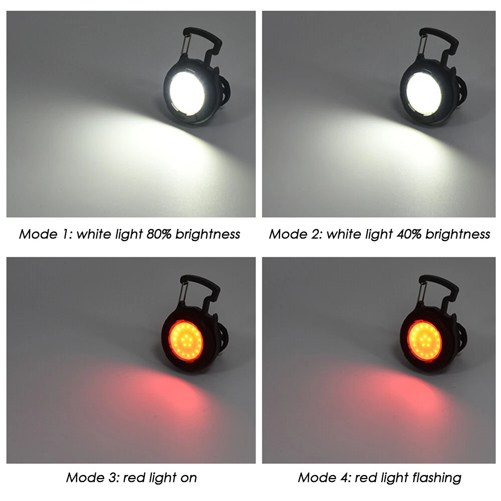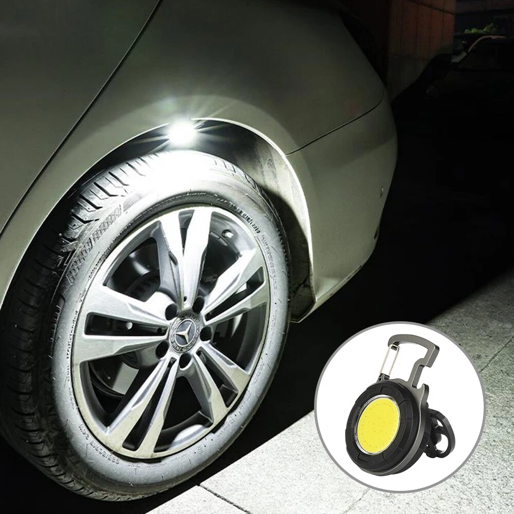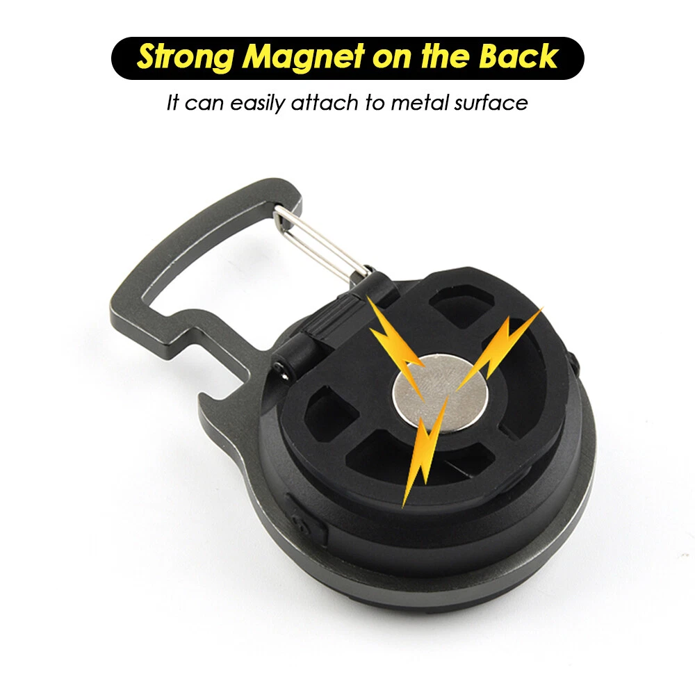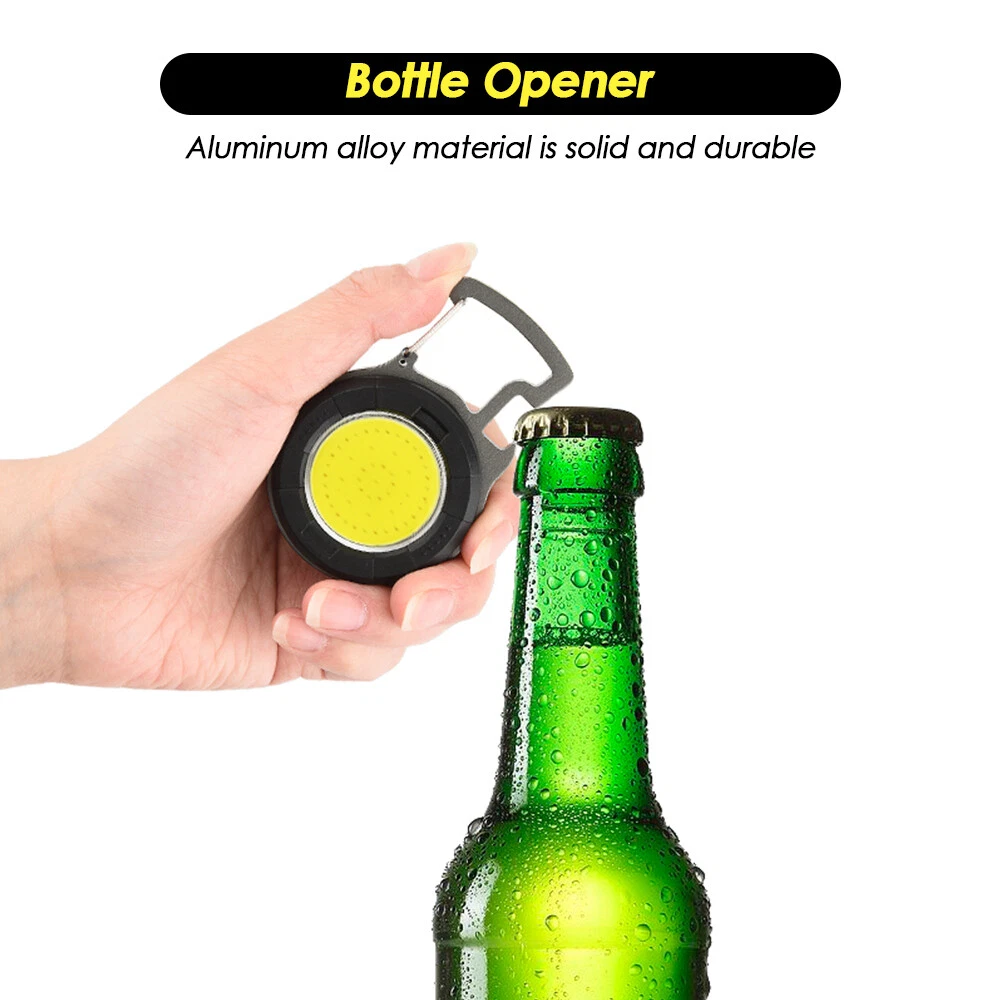 Mini COB Work Light Pocket Lamp Portable LED Flashlight USB Rechargeable Keychain Corkscrew with Magnet 4 Light Modes for Camping Outdoor Fishing Feature: 1. Super Bright COB Light: This keychain LED flashlight provides 1000lumens at maximum. At night, it can create a bright enough environment for you, which is applicable for night fishing, outing, camping, road upkeep, etc. 2. Easy to Carry and Place: Lightweight and equipped with a carabiner, the mini LED pocket lamp can hang in a key chain and be carried anywhere. This small work light of magnetic type can attach to any metal, and 160°adjustable bracket on the back allows you to position the light at different angles or hang it somewhere. 3. 4 Lighting Modes: 4 work modes that include white light 80% brightness, white light 40% brightness, red light on and red light flashing meet your different needs. 4. USB Rechargeable: The keychain flashlight is powered by built-in 650mAh polymer battery, which can light up for 2 hours after fully charged for 1.5 hours. It can be charged by car charger, laptop, adaptor and power bank. 5. More Usage: You can use it as a corkscrew, or a head light by fixing it on your hat. Specification: Type: Mini COB Light Battery: 1* 3.7V 650mAh polymer battery Charging Time: 1.5 hours Lighting Time: 2 hours Lumen: 1000lumens Size: 61*46*21mm Package Included 1/2/4 * COB Work Light 1/2/4 * USB Charging Cable Item Specifics Brand : Unbranded Type : Flashlight Features : Rechargeable, Waterproof, Lightweight, Portable,4 MODES Power Source : USB Voltage : 3.7 V Lighting Technology : LED Color : Black Battery Included : Yes Operating Time : 1-5 Hours Lumens : 1000 lumens Model : Mini cob work light Lighting Technology : LED Color : Black Battery Included : Yes Operating Time : 1-5 Hours Lumens : 1000 lumens Model : Mini cob work light