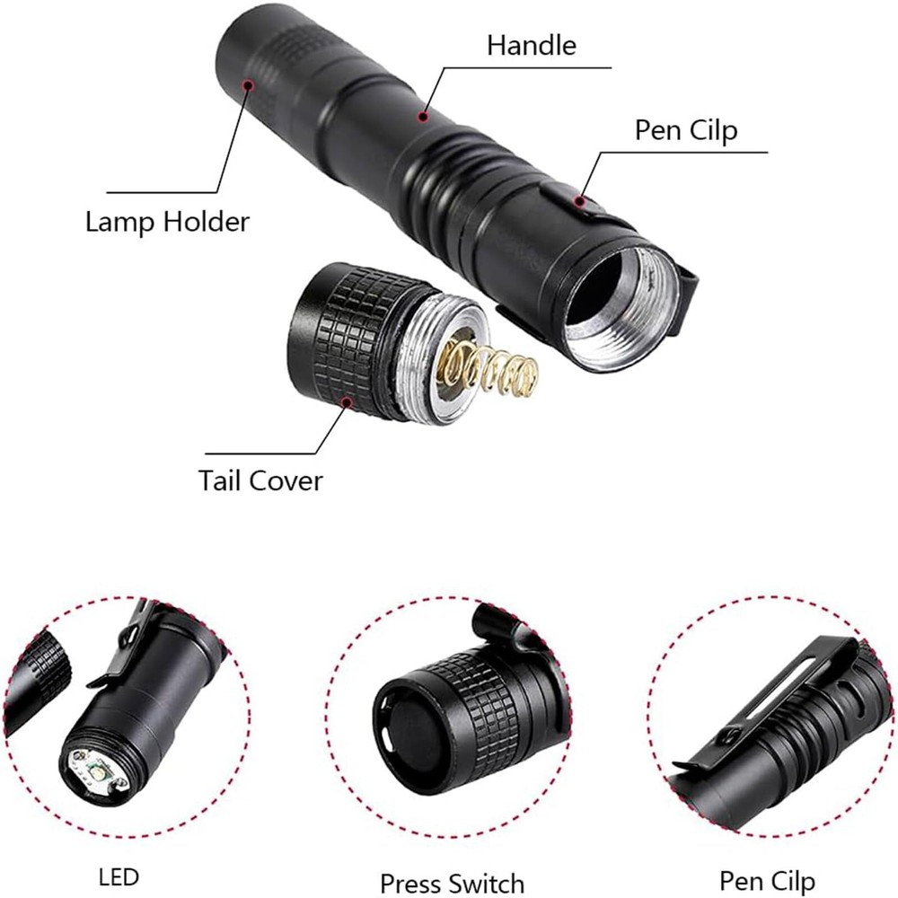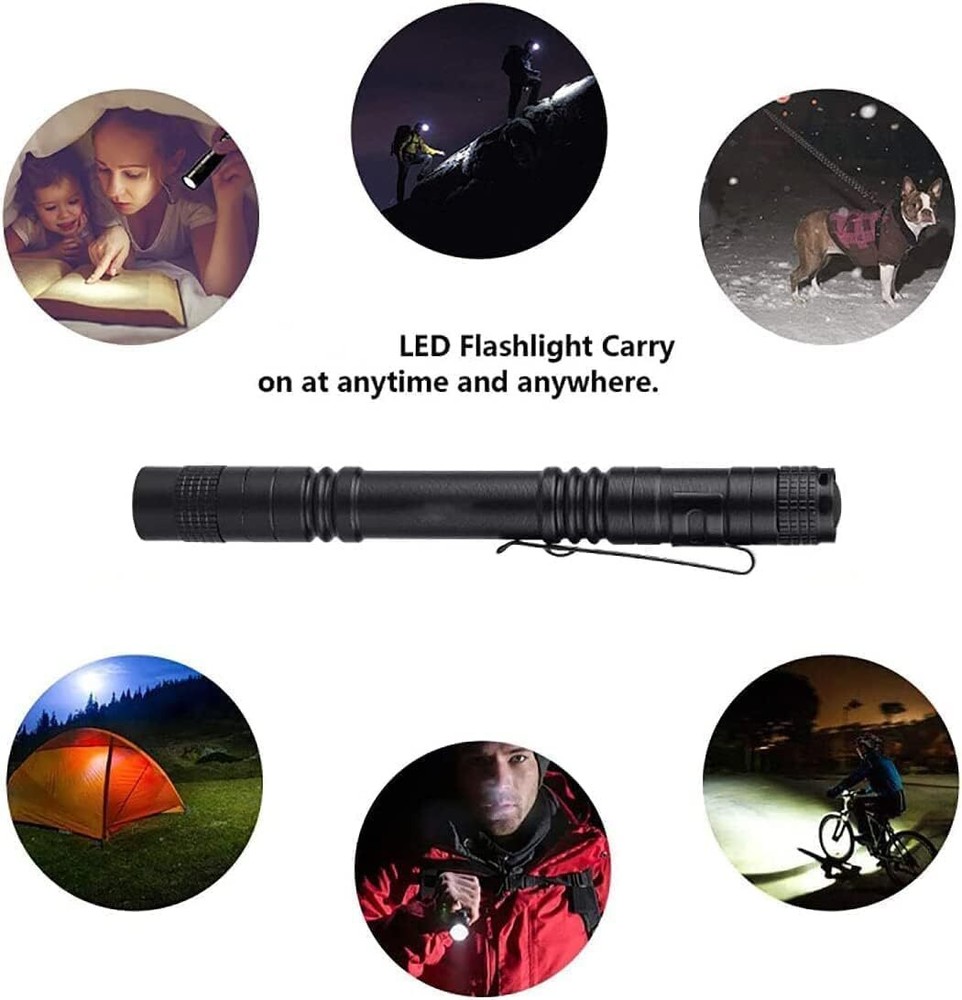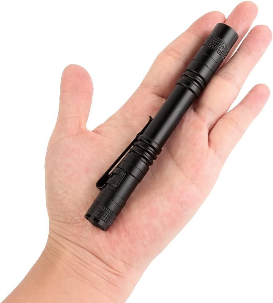 Product Description: Color: Black. Light: White. Switch: tail Use the battery: 2xAAA Battery. (No battery) Working voltage: 1.8-3V. Weight: 28g. Model : 1 Model . Size:5.3inch(L) *0.5inch ( Head diameter ) *0.5inch( Tail diameter ) This powerful and practical, general purpose flashlight is the perfect gift for a father, husband, wife, scout, or college student for any occasion. The tough, military-grade aluminum body makes it suitable for extreme conditions indoors or outdoors. You can count on it during storms, floods, power outages, earthquakes, and natural disasters. Portable and small, this torch is convenient to pack in your bag, glove compartment, camping gear or survival kit. The flash and SOS functions are life savers when doing roadside repairs or signaling for help. Highly reliable and easy to use, it is the perfect flashlight to have while fishing, hiking, hunting, exploring. How do you change the modes on this flashlight? Fully depress the on/off switch completely Just a light press to bounce the button. 【Bright】The diffused beam of the flashlight illuminates the concentrated area, which is suitable for close tasks;these small flashlights also work great as LED flashlights, pen lights , or repair lights for mechanics. 【Durable and Portable】 Our LED pen flashlights are made of durable aluminum construction with unbreakable, scratch-resistant lens, which can work reliably in rainy and snowy weather and resist to accidental fall and temporary immersion,The pocket is designed for easy portability and can fit in your handbag, backpack. 【Compact】each pen flashlight is about 13.3 cm/ 5.2 inches, with portable mini size and pen shape, which makes this pocket flashlight easily put into your pocket or bag and convenient for you to take out. 【Widely Applied】Wherever you go, it will be the perfect all-weather flashlight for outdoor activities, camping, hiking, fishing, power outages, home use and as an emergency flashlight. 【Reliable & Waterproof】Made of high quality alloy material, strong and sturdy, waterproof resistant from splashing water. Suitable for use in rain, snow, or emergency situations.