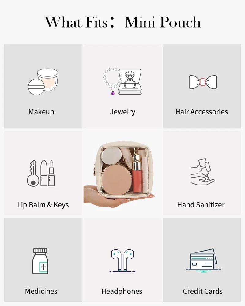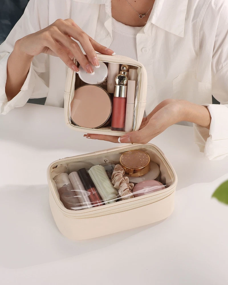 PREMIUM QUALITY: This elegant clear makeup bag is crafted from high-quality PU leather with durability.The natural texture not only feels luxurious but also adds a touch of sophistication to your travel ensemble. CLEAR VISIBILITY&EASY ACCESS: Our makeup bag allows you to see all your beauty essentials at a glance,making it effortless to locate and retrieve your favorite products while driving or during a quick pit stop. STAY BEAUTIFUL ON THE GO: Experience the epitome of travel convenience with our Car Companion Makeup Bag. Whether you're commuting, running errands, or embarking on a road trip, this sleek and transparent makeup bag effortlessly complements any car interior while providing easy access to your beauty essentials. Upgrade your car storage experience today and enjoy organized, accessible, and ready-to-use beauty essentials wherever your travels take you. VERSATILE&ADAPTABLE: This makeup bag is designed to adapt to various scenarios. the clear makeup bag highly versatile and ideal for travel, vacation, shopping, parties, work, gym,organizing your bathroom counter or daily use.this clear makeup bag can seamlessly function as a toiletry bag, makeup pouch, makeup case, or storage bag, making it the perfect companion for any occasion. IDEAL GIFT CHOICE: Surprise your loved ones with the gift of Pocmimut makeup bag. Whether it's for a christmas,birthday, anniversary, or any special occasion,Pocmimut clear makeup bag are sure to impress and make a lasting impression.