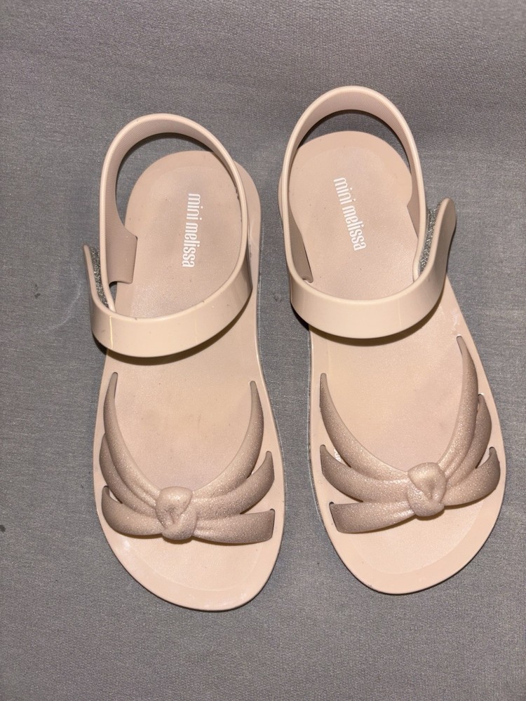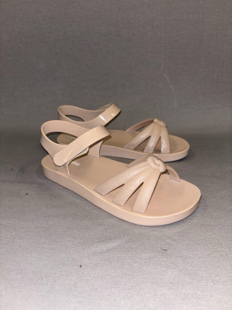 The Mini Melissa Girls Strappy Sandals in size 3 are perfect for young girls who love pink and a subtle sparkle. These sandals feature a hook and loop closure for easy wearing, a low top style for comfort, and a flat heel for all-day wear. Made of rubber, they are ideal for casual or travel occasions during the summer and spring seasons. The Mini Melissa brand ensures quality and style that little ones will love.