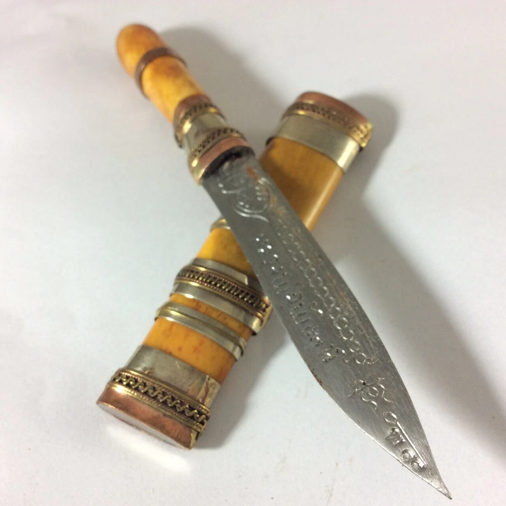 MAGICAL KNIFE Meed Mor LP PAT The Meed Mor is a ritual knife magically empowered, and often alchemically forged, and sheathed using sacred substances such as sacred treewoods, and other substances. Meed Mor knives are used for Ritual Magick, Carrying for Protection and Good Fortunes, and for Altar Worship for Bucha, to pray to for Blessings. But the Meed Mor, is also a kind of Magic Wand, Sceptre of Command over Spirits and Ghosts, and a hence, a Ritual Weapon much like the Athame in Wicca, to Banish Evil Spirits and Nullify Curses. Amulet Name : Magical Knife (Meed Mor) Created & Blessing By : Luang Por PAT Temple : Wat Huai Duan, Nakon Sawan Province Size Length : 12 cms Material : Iron mixed materials Origin : Thailand, South East Asia SUPER POWER MAGIC AMULET POWERFUL YANTRA Note: Photo samples from many pieces in stock Actual product may differ slightly FREE!! Shipping registered mail WORLDWIDE with tracking number. If you have questions, feel free to write me on e B a y message. THANK YOU FOR SHOPPING