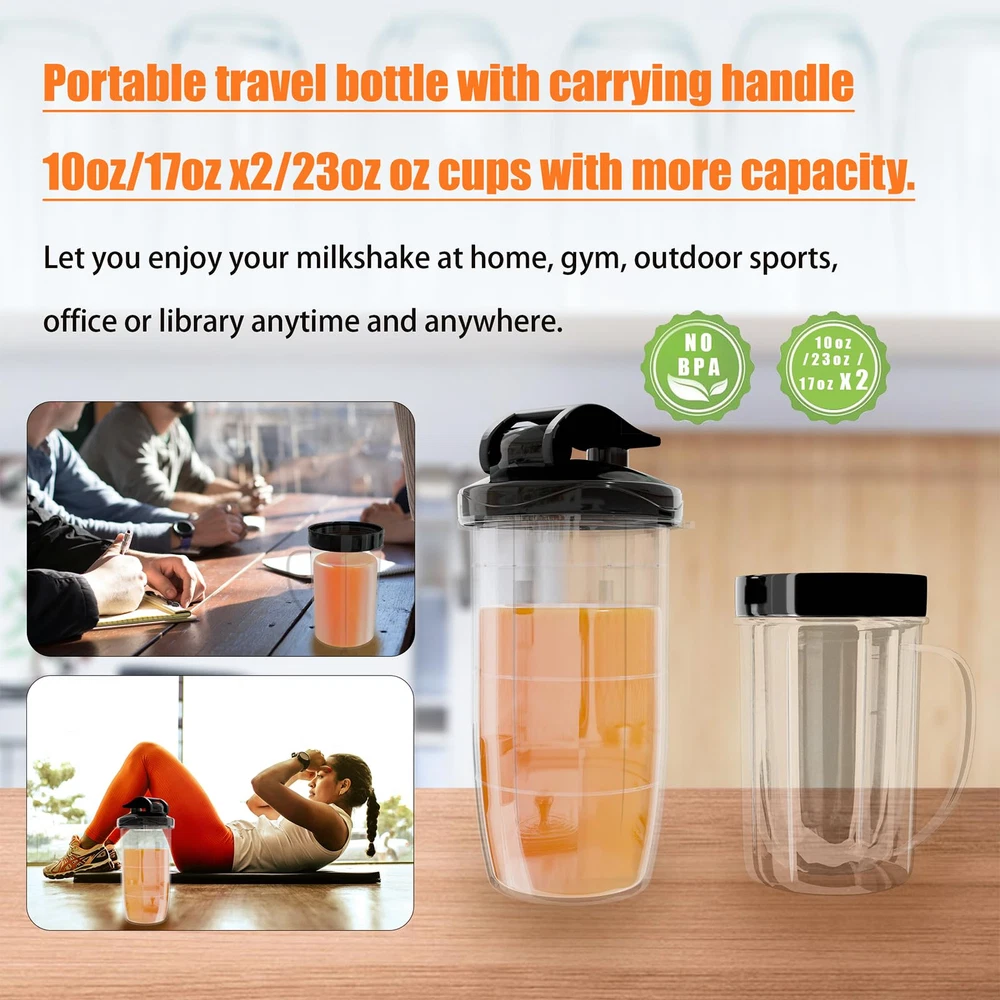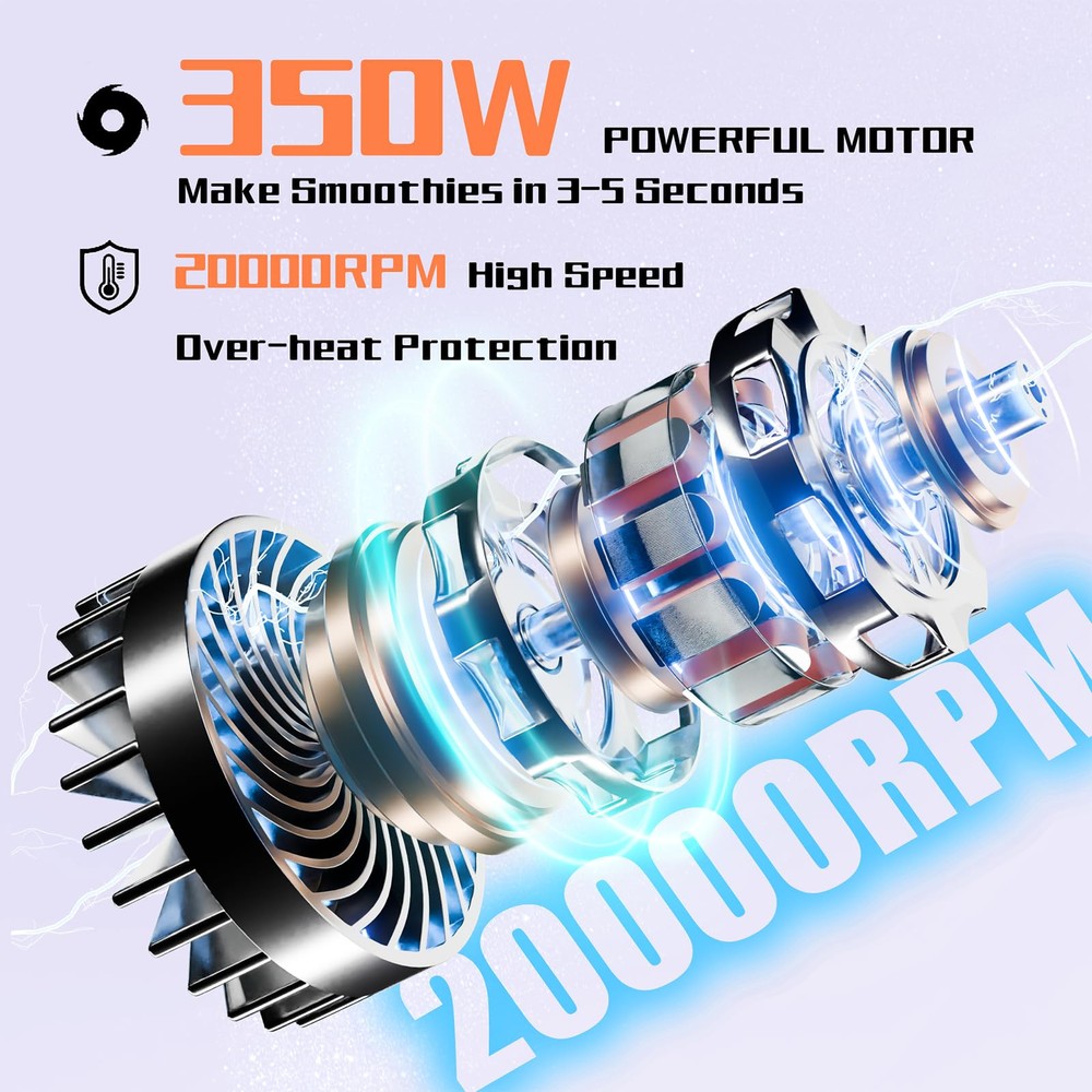 POWERFUL SMOOTHIE BLENDER: Peak Power 350W Smoothie Blender With Upgraded All-Copper Turbocharged Motor Pulse Technology, 20,000 Rpw High Speed, Faster And More Powerful But Just As Easy To Use. Load It With High-Density Whole Foods Like Nuts, Seeds, Hard Fruits, And More, Then Push, Twist, And Blend, And You'Re On Your Way To A Healthier Lifestyle. Larger capacity and portable design: Personal Blender With 10Oz/17Oz x2/23Oz Blending Cups; Portable Hook Adds Extra Portability For Carrying To The Office, Gym, Classroom, Car, Or In Your Bag; All Parts Are Bpa-Free To Ensure Healthy Drinking MULTIFUNCTIONAL BLENDER: Your Personal Blender With Stainless Steel 4 Blades Easily Blends Ingredients Of All Hardnesses. Great For Blending Juices, Shakes, Sauces, Jams And Baby Food. Stainless Steel 2-Blade Blade: Powerful Flat Blades Utilize Cyclonic Action To Break Down Hard Ingredients, Perfect For Grinding Coffee Beans, Spices And More. SAFE TO USE AND EASY TO CLEAN: The Electric Mixer Only Works When The Mixing Cups Are Properly Pressed; Cooling Fans On The Bottom And Back Dissipate Heat Quickly; Four Non-Slip Silicone Pads Keep The Food Mixer Balanced While In Operation; Cups And Lids Are Dishwasher-Safe; 90-Day Money Back Guarantee, 24-Month Replacement And Lifetime Technical Support. Nutritional Extraction: Extracting Hidden Nutrients From Whole Fruits And Vegetables. Drinks Containing Vitamins And Nutrients Are Extracted From Fruits And Vegetables. By Blending Whole Fruits And Vegetables, Including The Parts That Are Usually Discarded.
