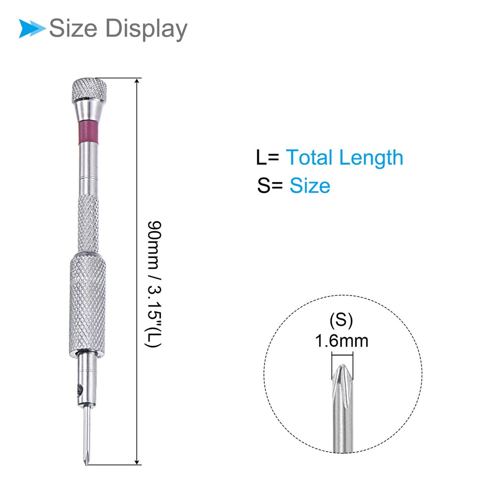 Document Attributes:* Size: 1.6mm* Total Length: 90mm / 3.15-inch* Shaft Material: Carbon SteelWhat Is Included:* 1 Piece x Micro ScrewdriversApplications & Features:--- This screwdriver is a multifunctional tool suitable for a variety of electronic devices and appliances and can be used on laptops, computers, game consoles, pocket knives, doorbells, dishwashers, routers, and more.--- The screwdriver features a comfortable handle that provides a secure grip and reduces tired during prolonged use--- The screwdriver is made from carbon steel material ensuring strength, durability and rust resistance for long-lasting performance.Useful Tips:--- Please confirm the screwdriver size before buying. Mini Phillips Screwdriver 1.6mm 90mm Cross Screwdriver W Anti-slip Handle Attributes: * Size: 1.6mm * Total Length: 90mm / 3.15-inch * Shaft Material: Carbon Steel What Is Included: * 1 Piece x Micro Screwdrivers Applications & Features: --- This screwdriver is a multifunctional tool suitable for a variety of electronic devices and appliances and can be used on laptops, computers, game consoles, pocket knives, doorbells, dishwashers, routers, and more. --- The screwdriver features a comfortable handle that provides a secure grip and reduces tired during prolonged use --- The screwdriver is made from carbon steel material ensuring strength, durability and rust resistance for long-lasting performance. Useful Tips: --- Please confirm the screwdriver size before buying. Hot Item Payment 1.We accept eBay payment . 2.Payment must be received within 7 business days of auction closing. Shipping 1.We ship to your eBay or Paypal address. Please make sure your eBay and Paypal address is correct before you pay. 2.Items will be shipped within 1-3 business day when we received payment. 3.Delivery time depends on destination and other factors. Description Policy Mini Phillips Screwdriver 1.6mm 90mm Cross Screwdriver W Anti-slip Handle Attributes: * Size: 1.6mm * Total Length: 90mm / 3.15-inch * Shaft Material: Carbon Steel What Is Included: * 1 Piece x Micro Screwdrivers Applications & Features: --- This screwdriver is a multifunctional tool suitable for a variety of electronic devices and appliances and can be used on laptops, computers, game consoles, pocket knives, doorbells, dishwashers, routers, and more. --- The screwdriver features a comfortable handle that provides a secure grip and reduces tired during prolonged use --- The screwdriver is made from carbon steel material ensuring strength, durability and rust resistance for long-lasting performance. Useful Tips: --- Please confirm the screwdriver size before buying. Hot Item Payment 1.We accept eBay payment . 2.Payment must be received within 7 business days of auction closing. Shipping 1.We ship to your eBay or Paypal address. Please make sure your eBay and Paypal address is correct before you pay. 2.Items will be shipped within 1-3 business day when we received payment. 3.Delivery time depends on destination and other factors.