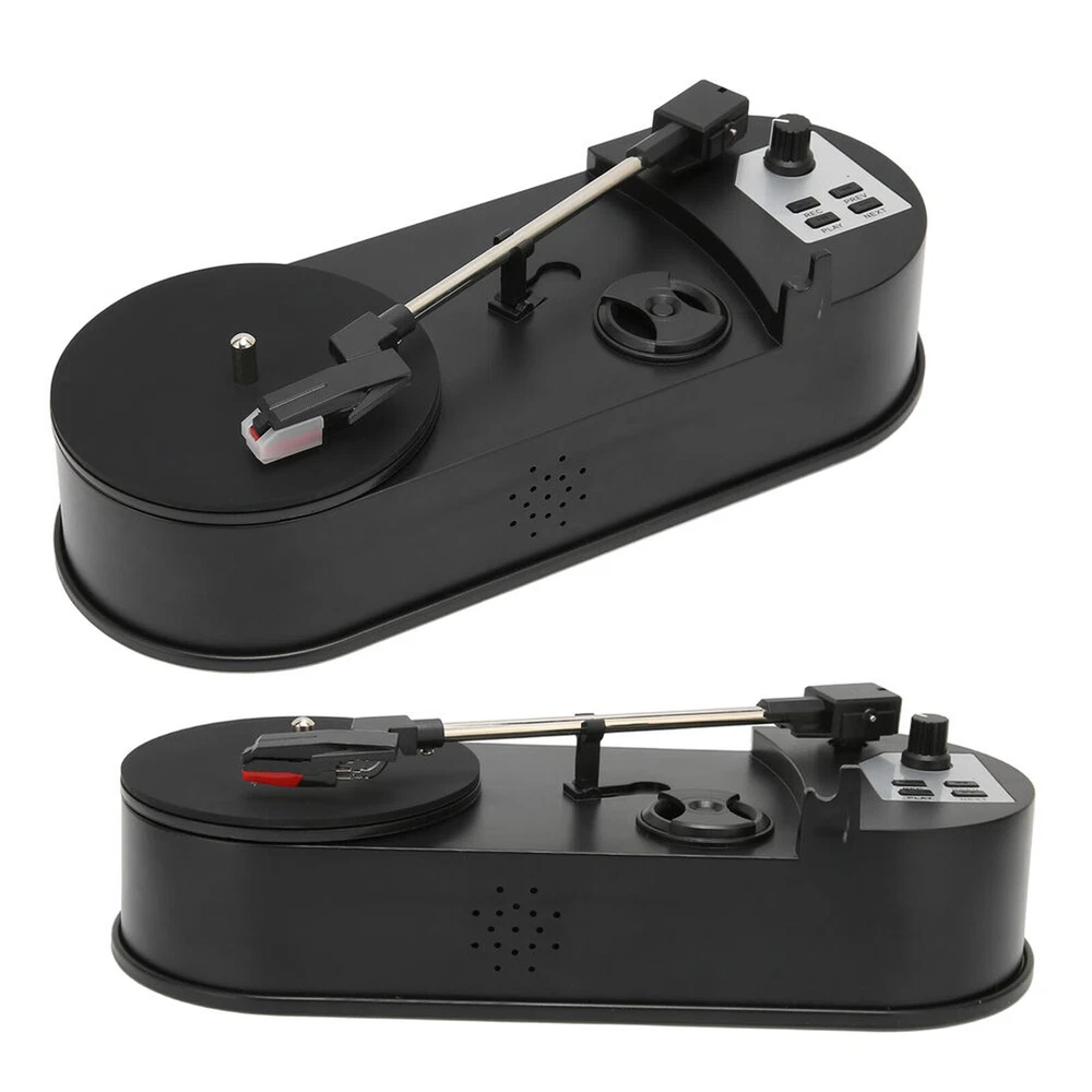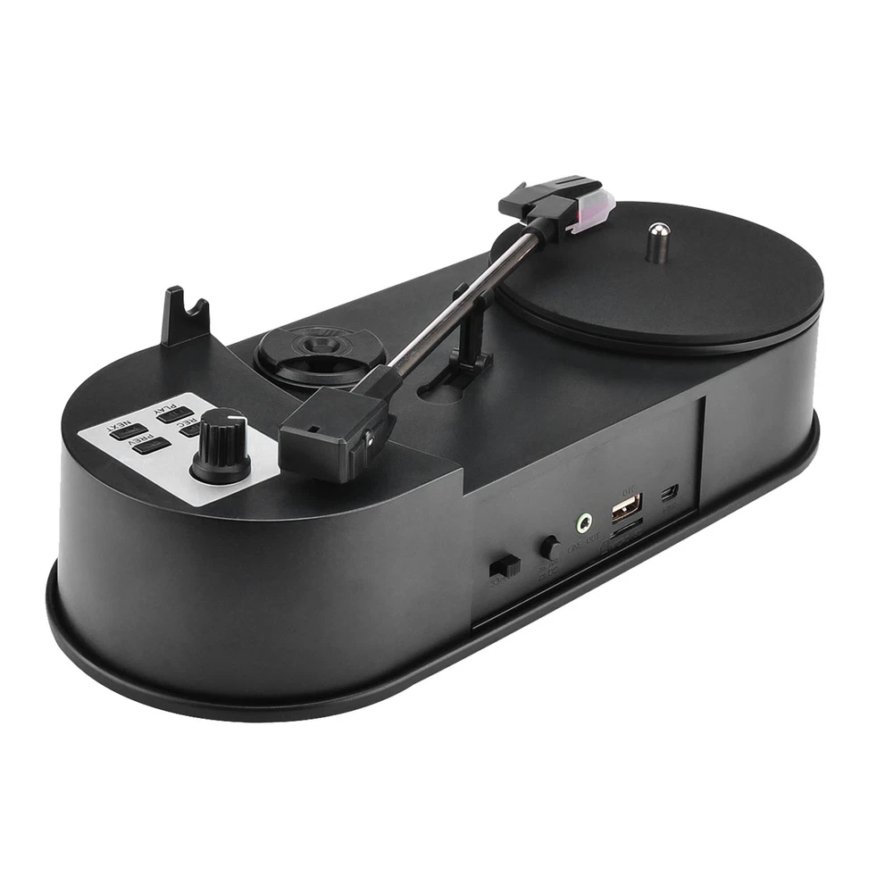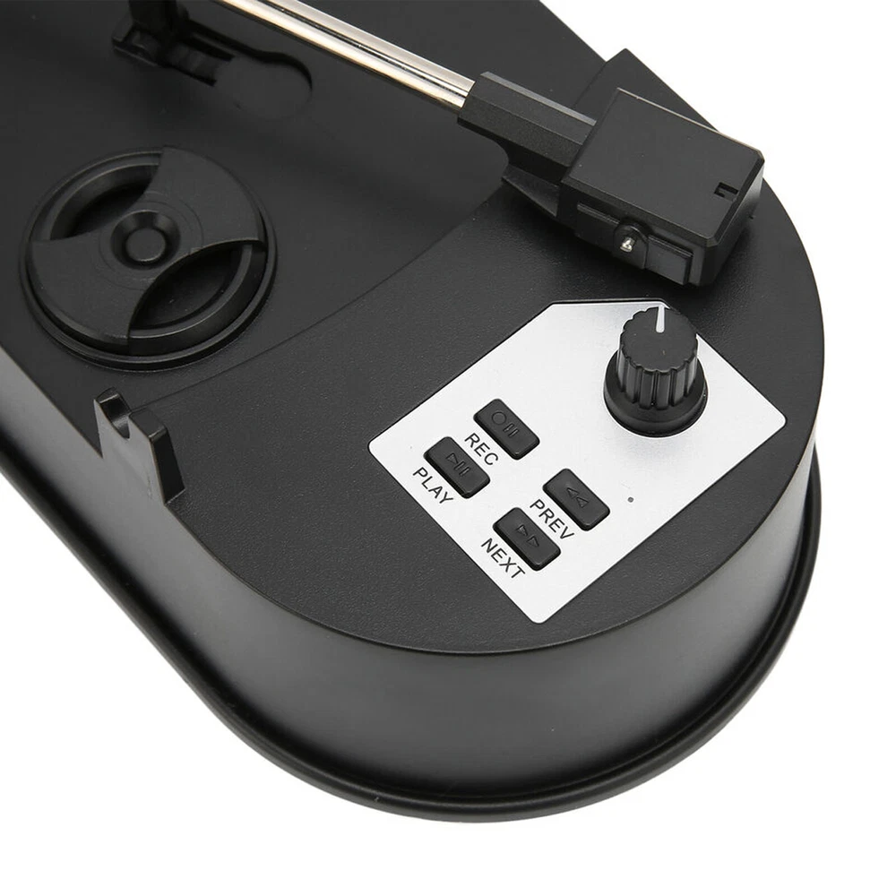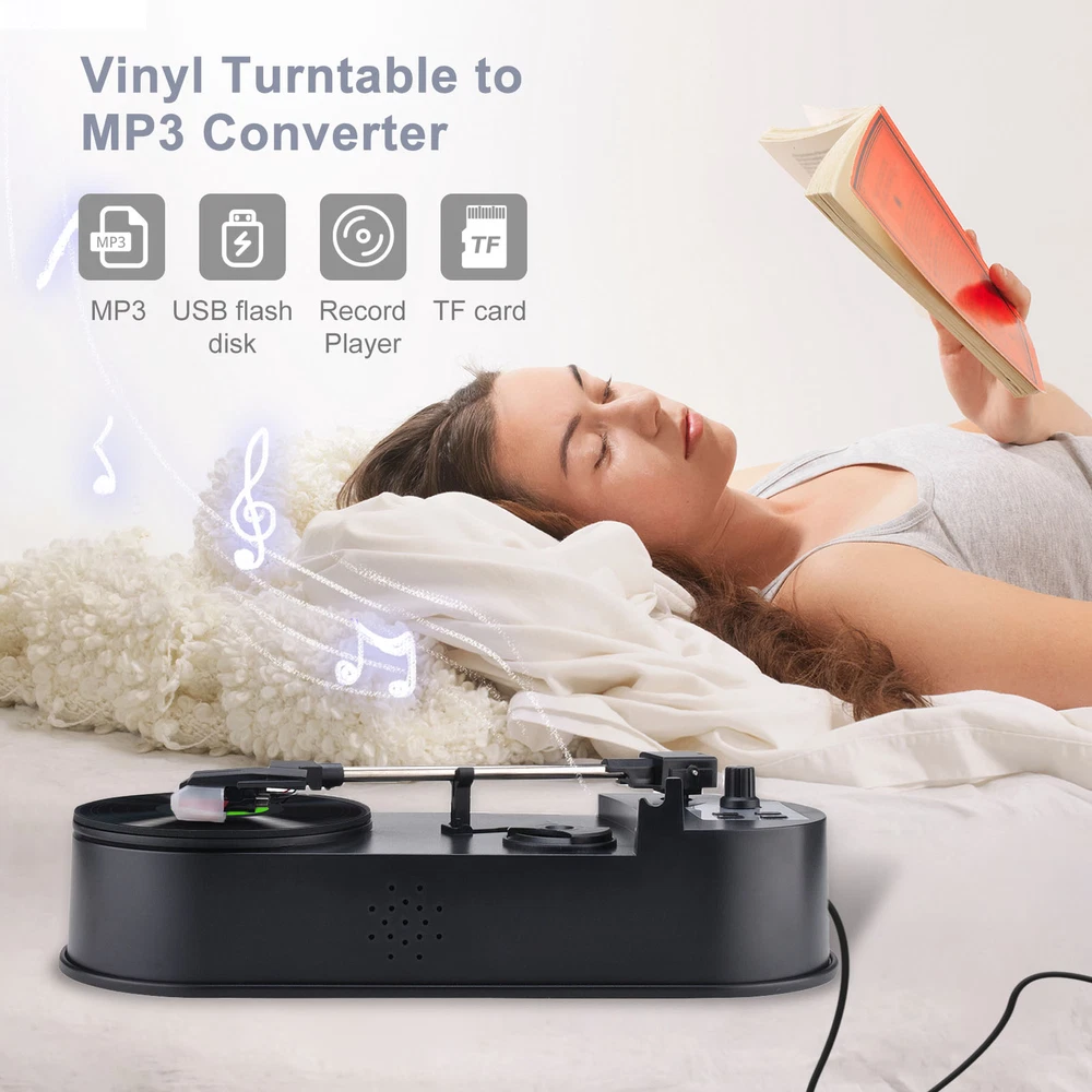 Features: 1.Mini vinyl turntable record player can play records, support LP: 33/45 PRM 2.With this Turntable to MP3 converter, you can easily transfer your vinyl record to MP3 format. It can directly convert to a plug USB flash, no PC required. 3.The USB vinyl to MP3 converter is coupled with playback function so you can easily check the recorded file. 4.Just simply press the recording button then the vintage vinyl player will start to record (convert)the playing music to MP3 format, the green indicator will be quick flashing (if not, means not recording, re-plug your USB flash and try again). Press the recording button again to stop recording and save a MP3 file in USB flash or SD card. 5.Vinyl turntables player is made of high quality ABS material, durable, wear resistant and long lasting. So stable performance and high reliability is guaranteed. Specifications: Connectivity Technology: USB Material: ABS Style: Vintage Color: Black Power Supply: AA battery/ USB Port Packing List: 1 * Vinyl Turntable 1 * Manual 1 * USB Cable