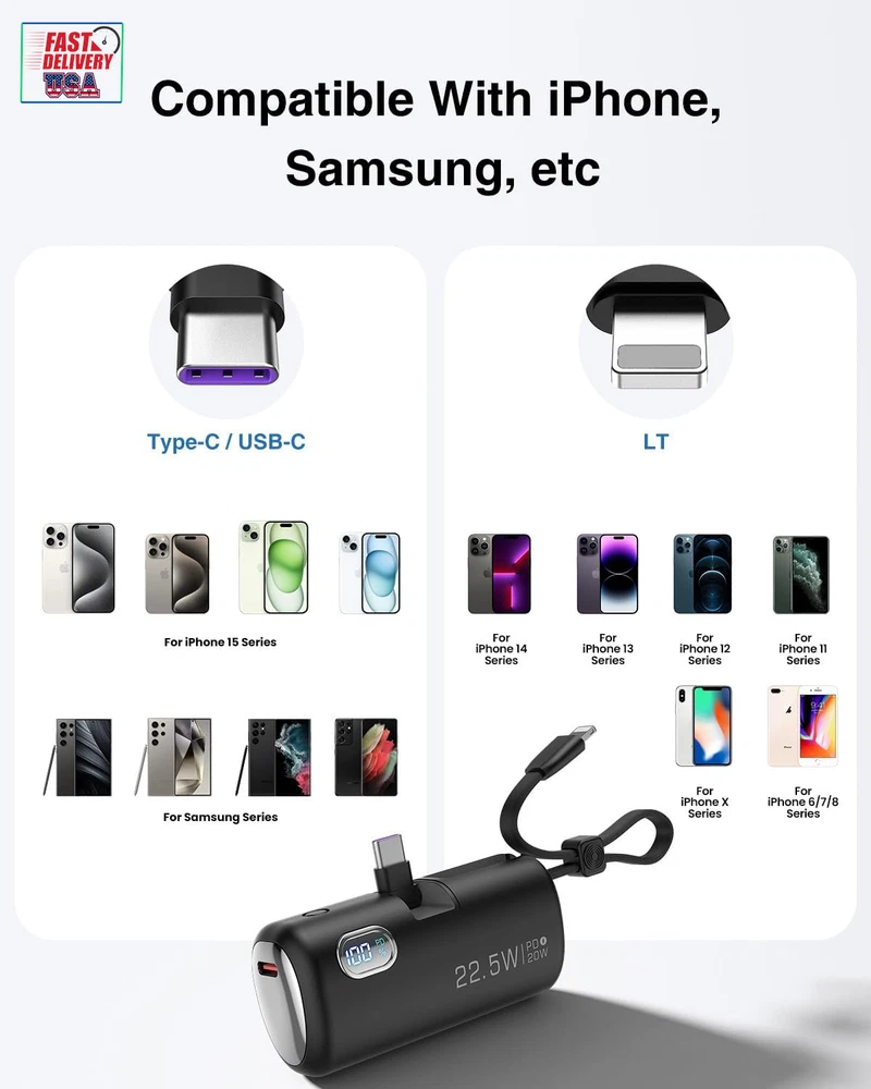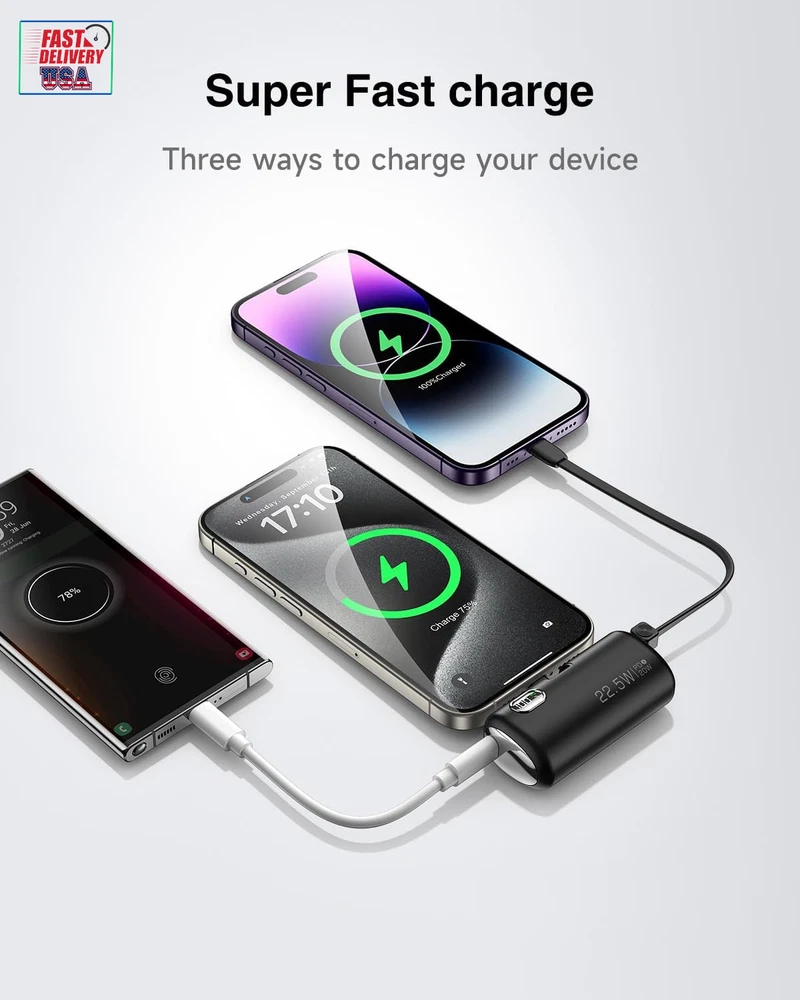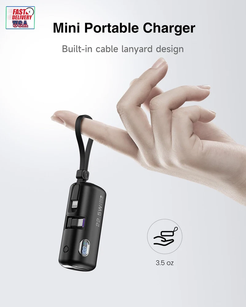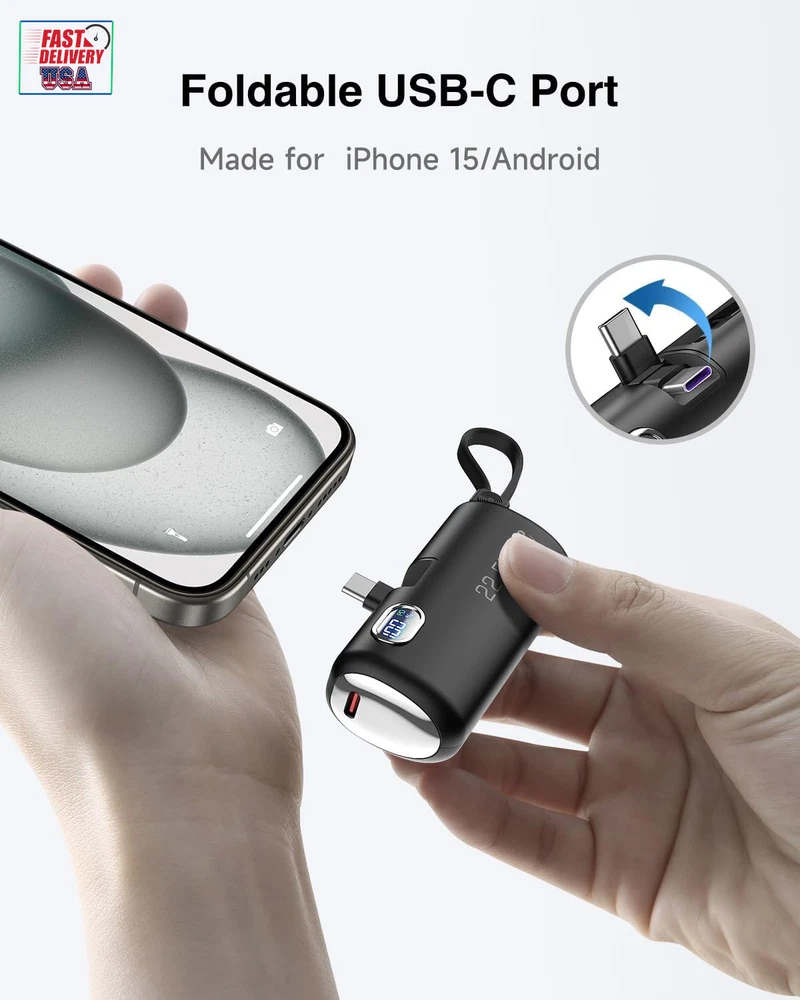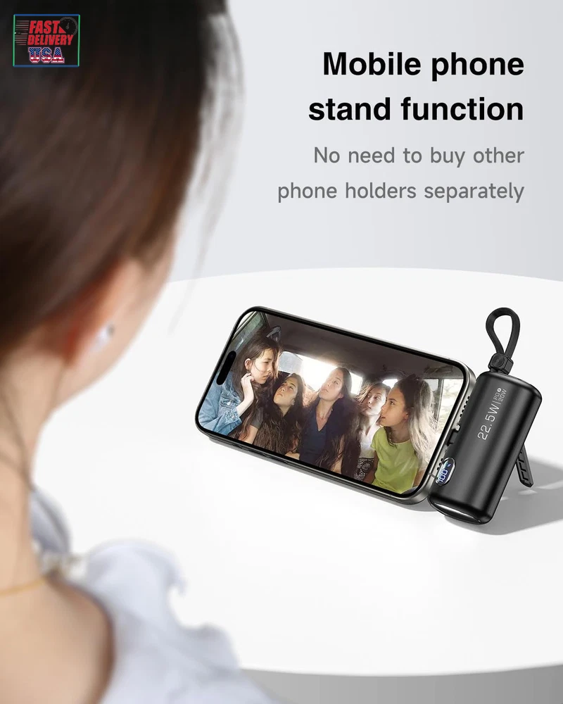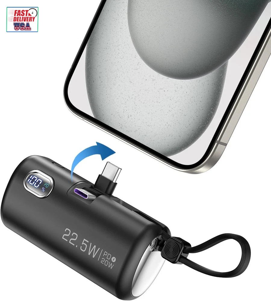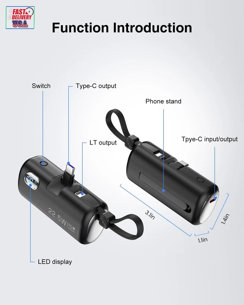 Store New Arrivals Add to Favorite View Feedback Contact Mini Power Bank with Built-In Foldable USB-C Connector, 5,000Mah Small Portable Charger with Built in Cable, 22.5W Fast Charging Battery Pack for Iphone15/14/13/12/11/Samsung/Huawei/Ipad and More. Description Item model number GN-97 Battery Capacity 5000 Milliamp Hours Color Black Product Dimensions 3.1 x 1.1 x 1.4 inches Country of Origin China Connector Type In-line connector Item Weight 3.5 ounces Batteries 1 Lithium Polymer batteries required. Special features Digital Display, Fast Charging Other display features Wireless Special Feature Digital Display, Fast Charging 【Collapsible USB-C connector】: The convenient collapsible design protects your USB-C connector, your hands, your wallet and pockets, and saves space. 【Three-port high-speed charging】: Experience 22.5W high-speed charging with dual USB-C ports and built-in LT cable. Ensure fast charging in case of time crunch. In addition, the digital display accurately displays the remaining power, allowing you to understand and control your charging needs. 【Mini size】: The small power bank effortlessly fits into your pocket or purse and comes with a cable lanyard for easy finger carrying. 【Phone stand function】: Adjust the Angle of the phone by inserting the foldable USB-C connector and opening the stand, you can watch videos while charging. 【All-day power】: With an accurate and reliable 5,000mAh capacity, the small portable charger keeps your device fully charged wherever you are. 【What you get】: Power bank, USB-C to USB-C cable, user manual, 24-month warranty, and our friendly customer service. Product Description 1 Unique foldable design 2 PD18W USB-C Input ABOUT US We offer the best prices around on high quality products. Our E-store includes media such as books, movies, music and games while offering electronics, toys, sporting apparel, clothing, tools, general home, garden items and more. SHIPPING We are always working hard to ensure your package arrives as soon as possible. Please understand that some factors like weather, high postal traffic, and the performance of shipping companies are outside of our control. We offer free shipping to the lower 48 states and ship within 2 business days of payment, usually sooner. We do not accept P.O. Boxes. Please provide a physical address. For shipping outside of the continental USA, we only use eBay's Global Shipping Program.The item is shipped to KY and then sent to the rest of the world. International customers are responsible for all duties and taxes. Continue to check out in order to calculate costs for shipping the item to your country. Messages regarding eBay's Global Shipping Program MUST be directed at eBay EXCLUSIVELY. RETURNS We offer a 30-Day Return Policy on items which you are not completely satisfied with. You have the option for a full-refund or an exchange of the item. No returns are available on items shipped outside of the USA. PAYMENT We accept PayPal. CONTACT US This page content is yet to come Please ad us to your favorite seller and visit again later Thank You CUSTOMER SATISFACTION We try our very best to make sure every customer is completely satisfied. If there's a problem, message us! We're happy to help. WE ACCEPT Copyright © 2021 AutoDS. | All Rights Reserved