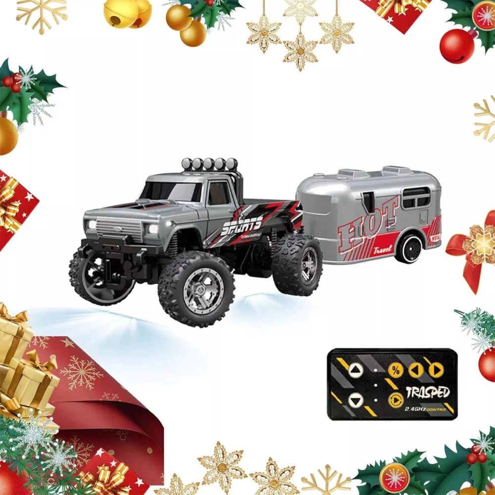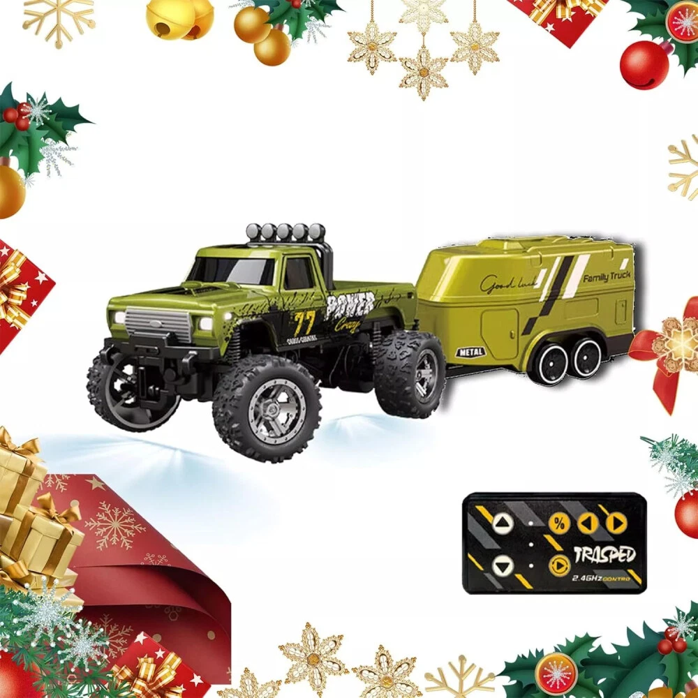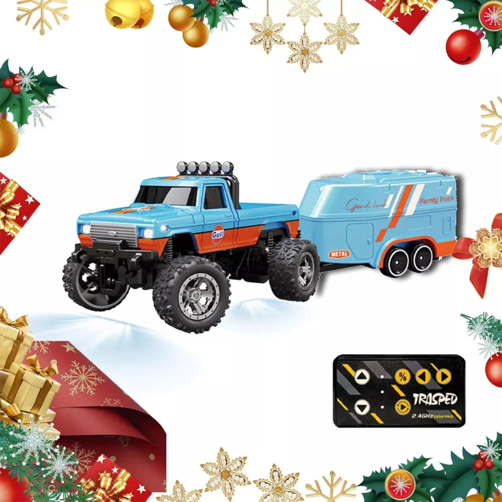 Mini RC Monster Truck USBC Rechargeable Underflow with Trailer,1:64 Scale Alloy~